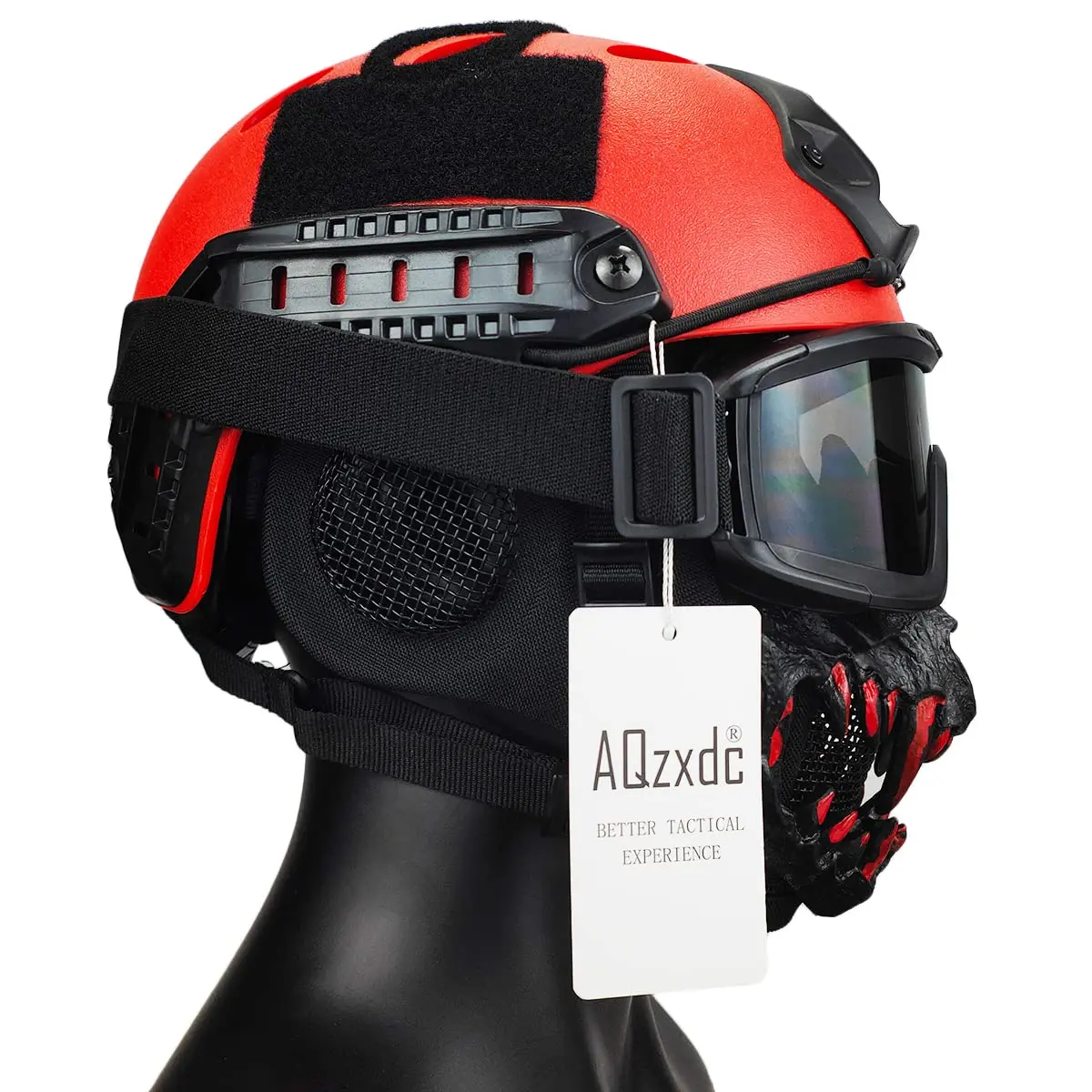 ♥ Máscara Airsoft: Material: TPE súper suave + nailon 1000D + malla metálica de acero.Doble protección.Resistencia al impacto de más de 600 fps.El compañero perfecto para los cascos de airsoft.