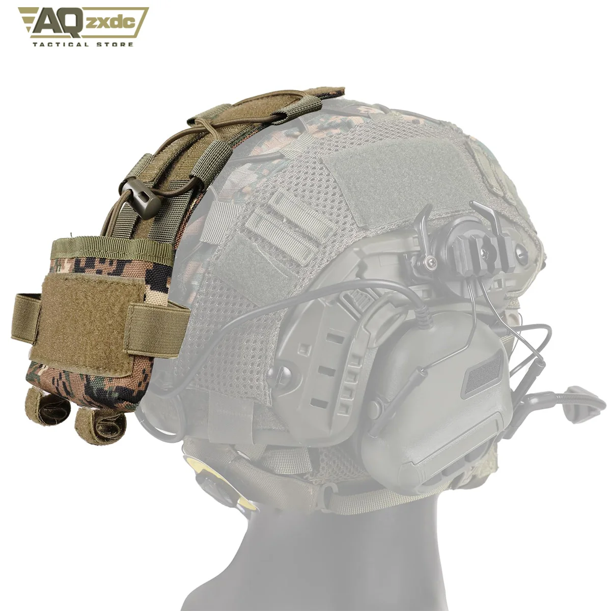 Bolsa para batería: bolsa táctica para casco con dispositivo de fijación de cuerda ajustable que absorbe los golpes, seguro para transportar flash de identificación o torniquete de combate, anillo externo para luces químicas y superficie de pila de anillos para parches de unidades u otros accesorios de gancho y bucle.