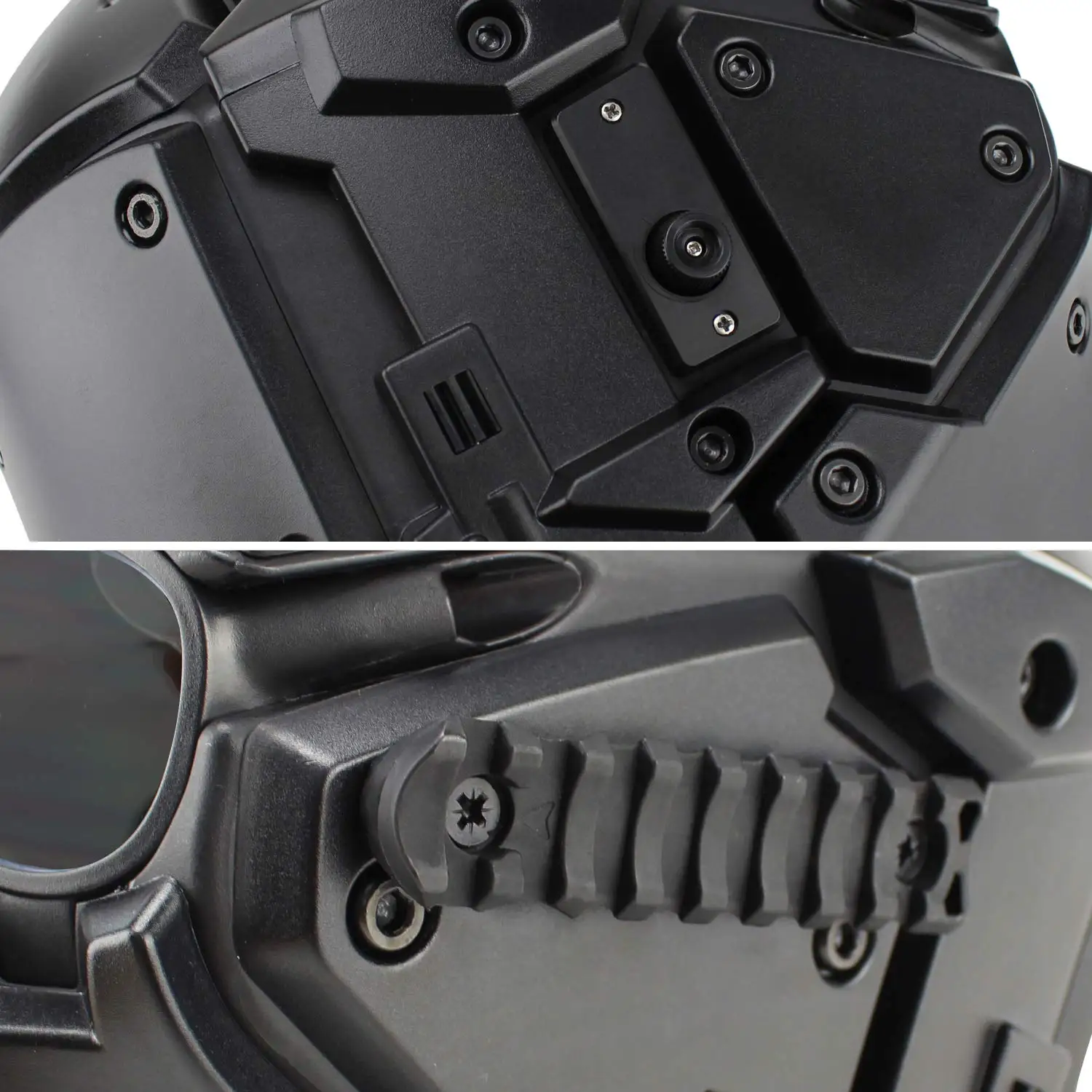 El diseño de ventilador oculto y los botones ajustables hacen que el casco esté ventilado y sea fácil reemplazar la circunferencia de la cabeza y reemplazar el escudo VAS y la llave hexagonal con una alfombrilla de EVA y un coágulo de malla.