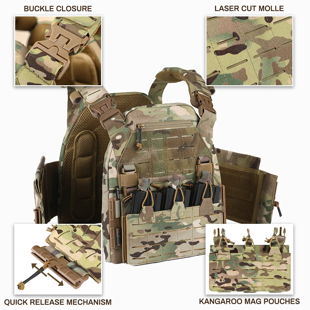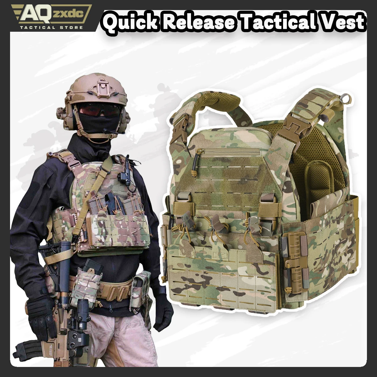 AQzxdc Chaleco táctico de liberación rápida para exteriores, chaleco táctico multiusos Molle para senderismo, protección de camuflaje, combate, chaleco táctico versátil