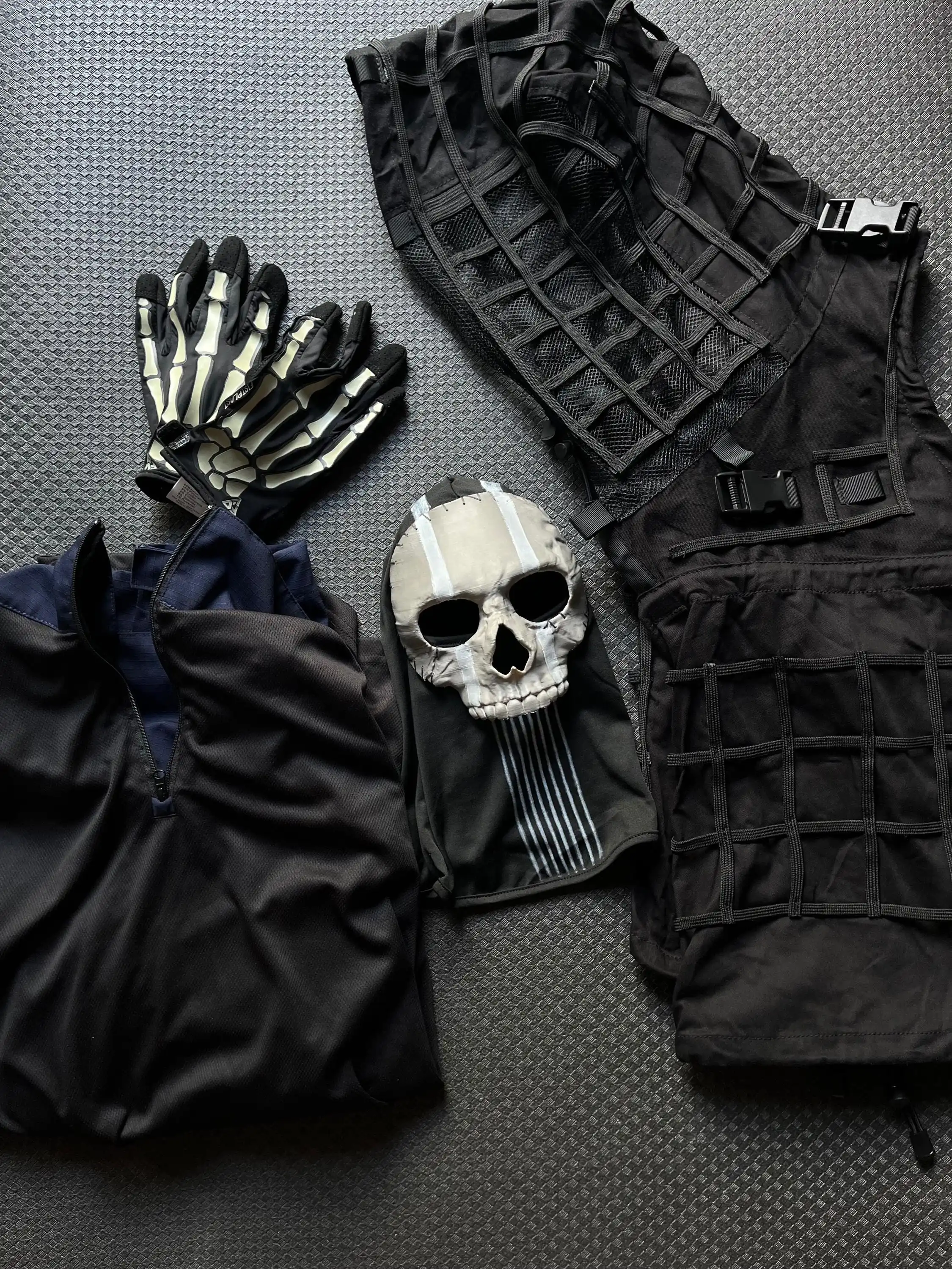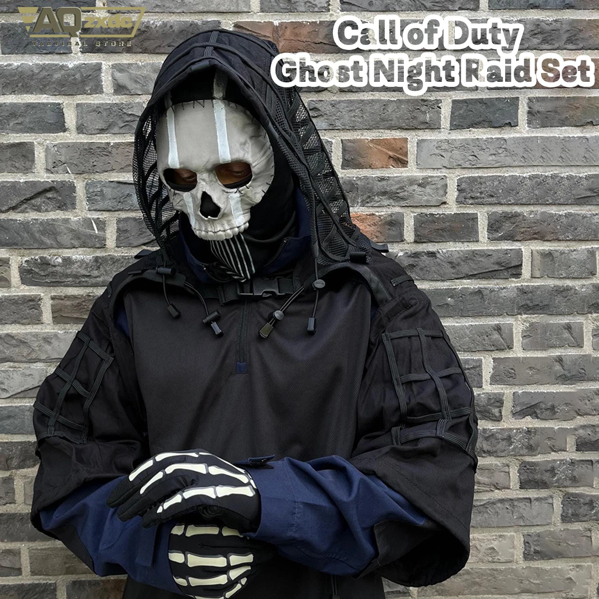 AQzxdc Cod Dark Ops Ghost Conjunto de equipo táctico – Traje sigiloso con mascarilla de calavera, Ghillie, camisa y guantes, para disfraz de Halloween