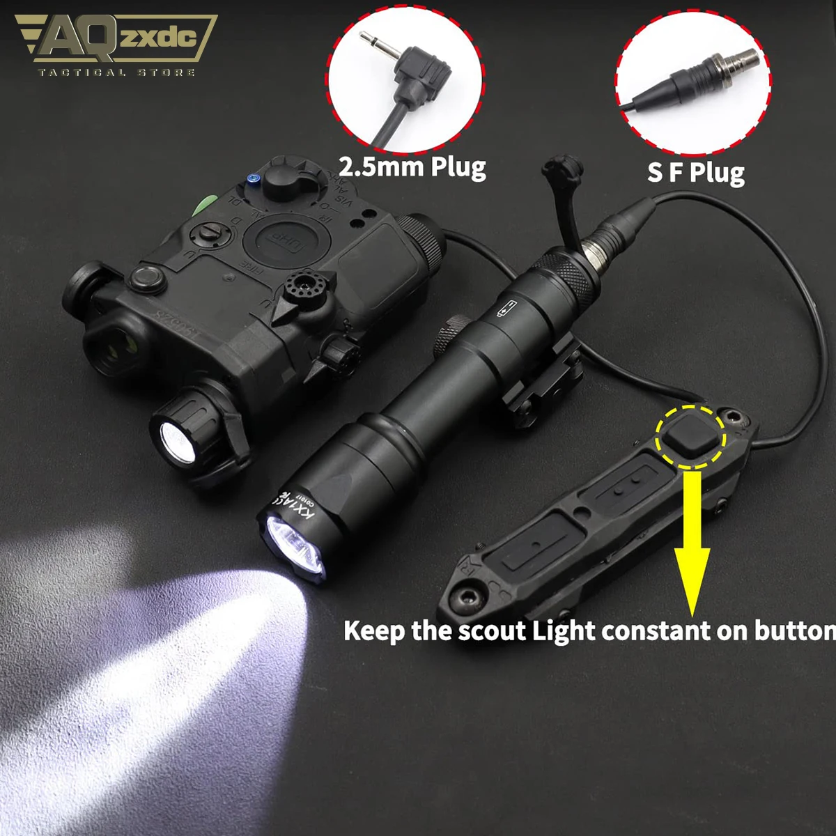 INTERRUPTOR DE DOBLE PRESIÓN TÁCTICA: El interruptor dual remoto puede controlar simultáneamente la linterna y el láser, enchufe SF: adecuado para Scout Light de la serie M; enchufe de PIN 2,5 Delgado: adecuado para la mira láser de la serie PEQ. Enchufe de 3,5mm: Para láser con enchufe de 3,5mm.
