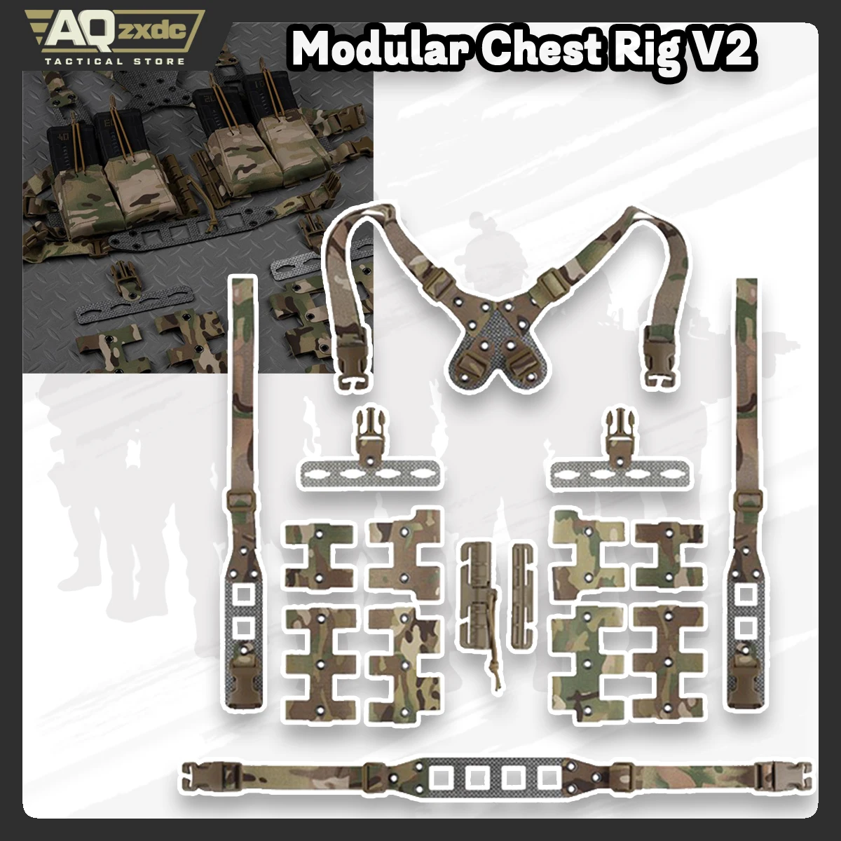 AQzxdc Equipo de pecho modular táctico V2 - con hebilla de liberación rápida, diseño liviano, puede decorar la bolsa táctica a voluntad para la guerra