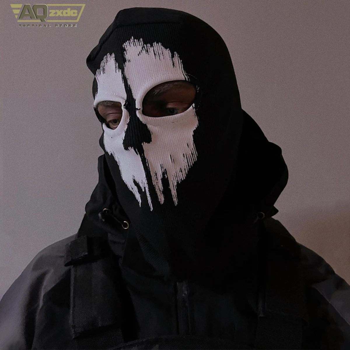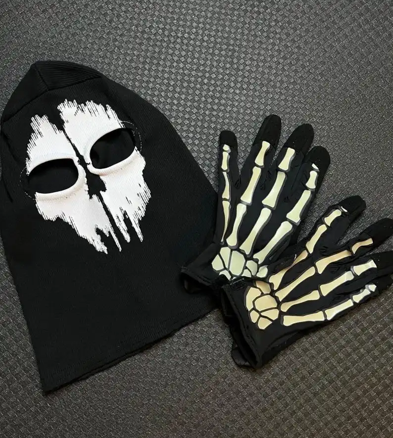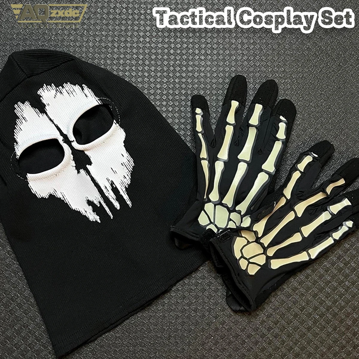 AQzxdc Máscara de pasamontañas de calavera fantasma y guantes de esqueleto luminosos: juego de cosplay táctico para accesorios de Halloween de cosplay al aire libre