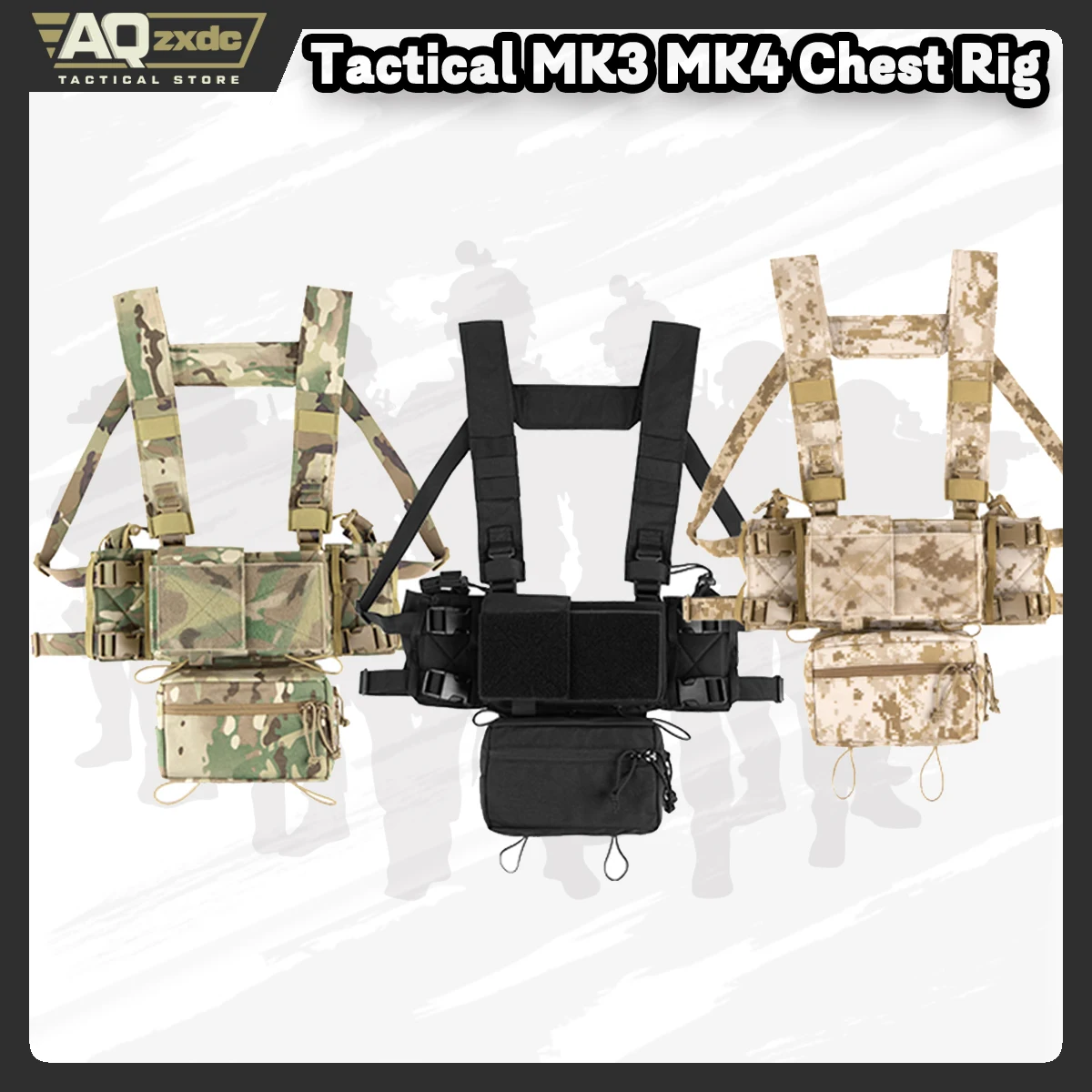 AQzxdc-plataforma de pecho táctica MK3 MK4 con bolsa de Radio, arnés de bolsa de caída, chaleco de aparejo de pecho Modular de uso General de camuflaje