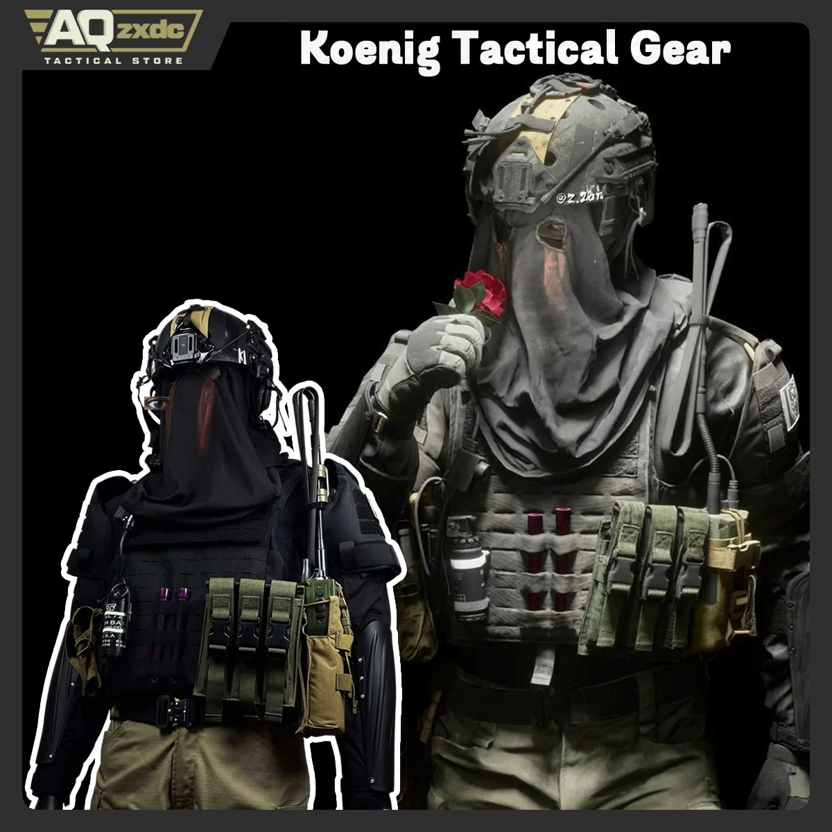 AQzxdc Tactical Cod Koenig Juego completo de equipo táctico restaurado, Call of Duty 19 Koing Casco Chaleco Pantalones para juego de cosplay Airsoft