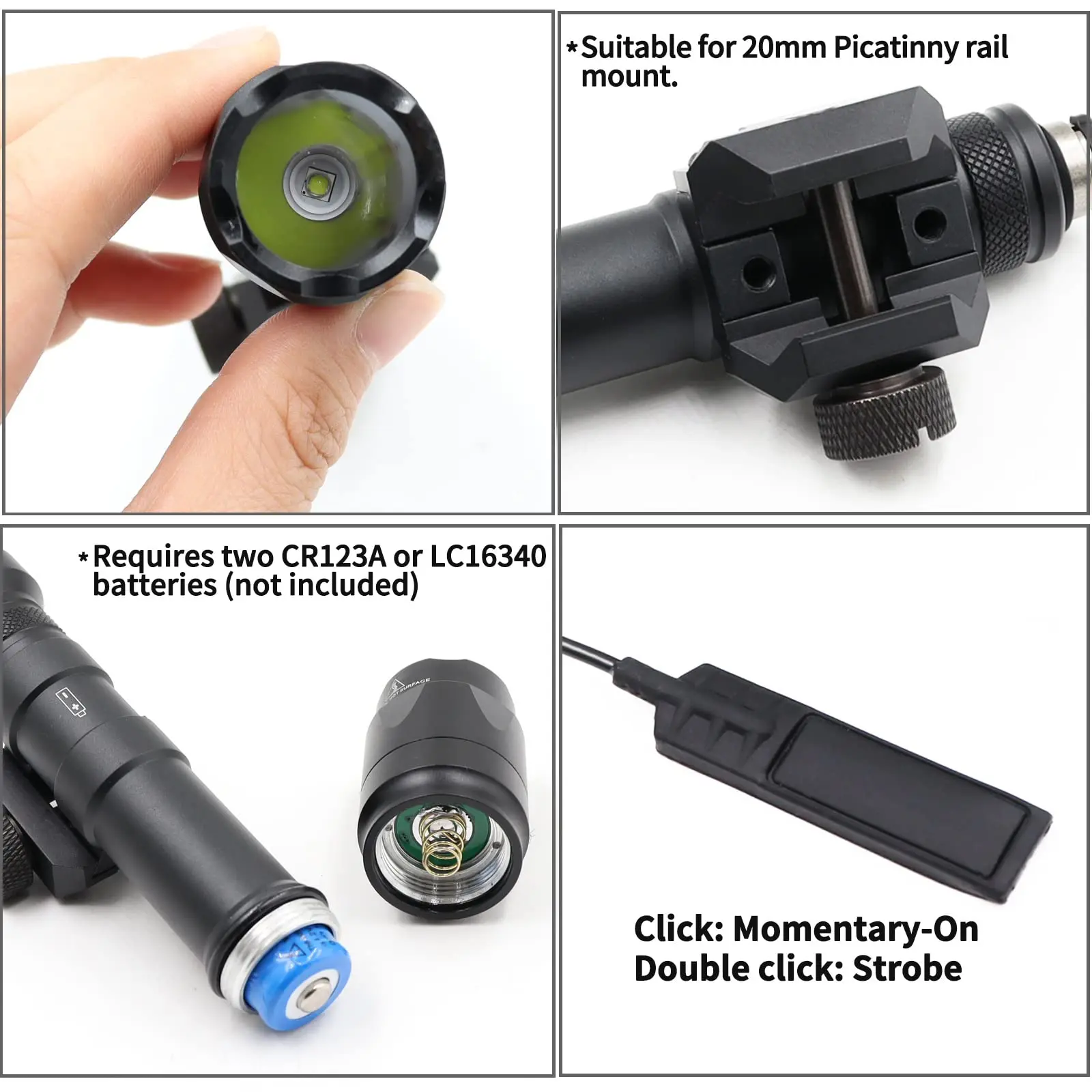 AQzxdc TacticalM600C Luz LED blanca con arma estroboscópica Luz para rifle, con interruptor de presión remota Luz táctica 400 lúmenes