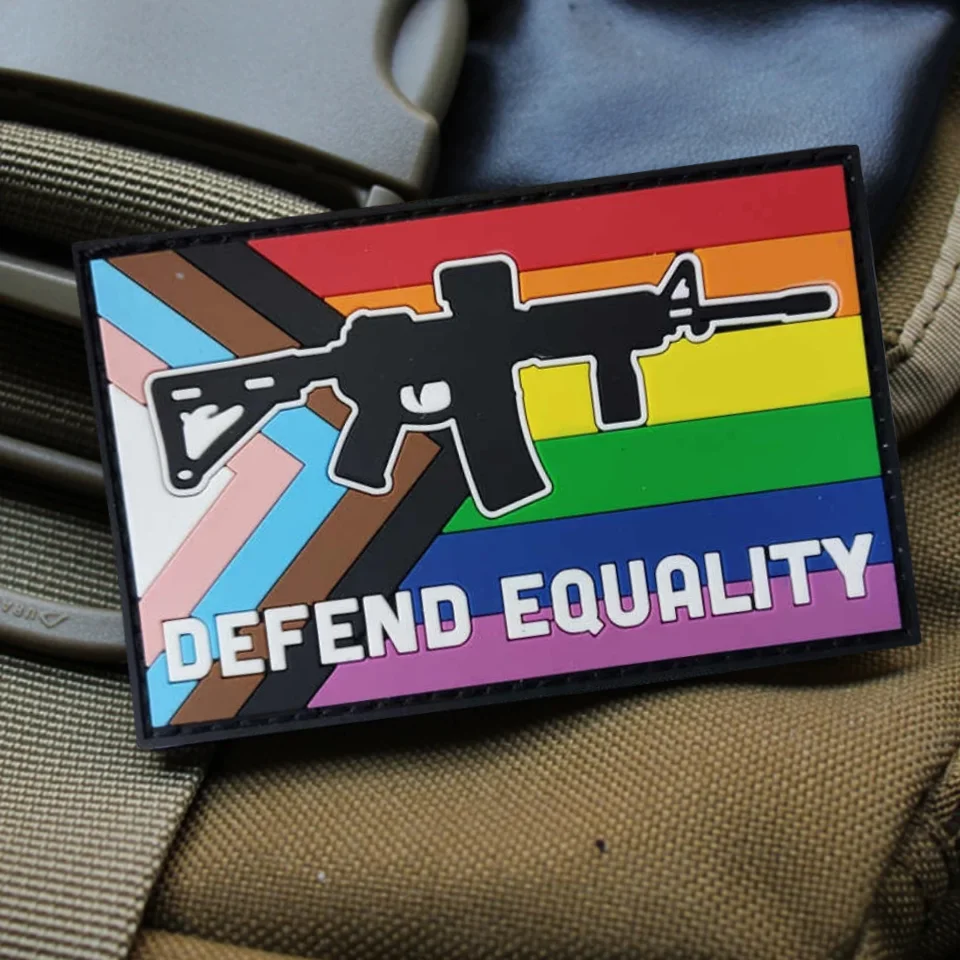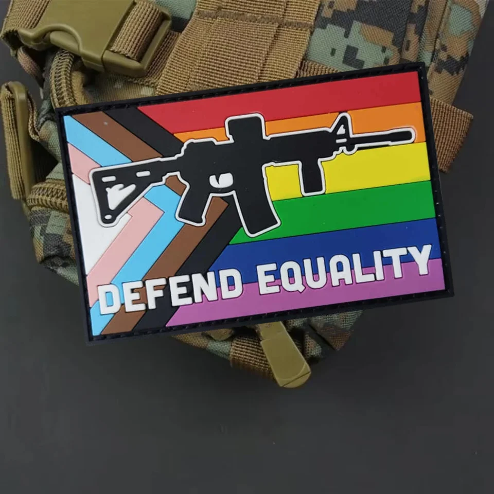 AR-15 defensa de la igualdad, parche táctico del orgullo del progreso, parche de gancho y bucle de PVC, insignia de moral militar para exteriores, pegatinas para ropa y mochila