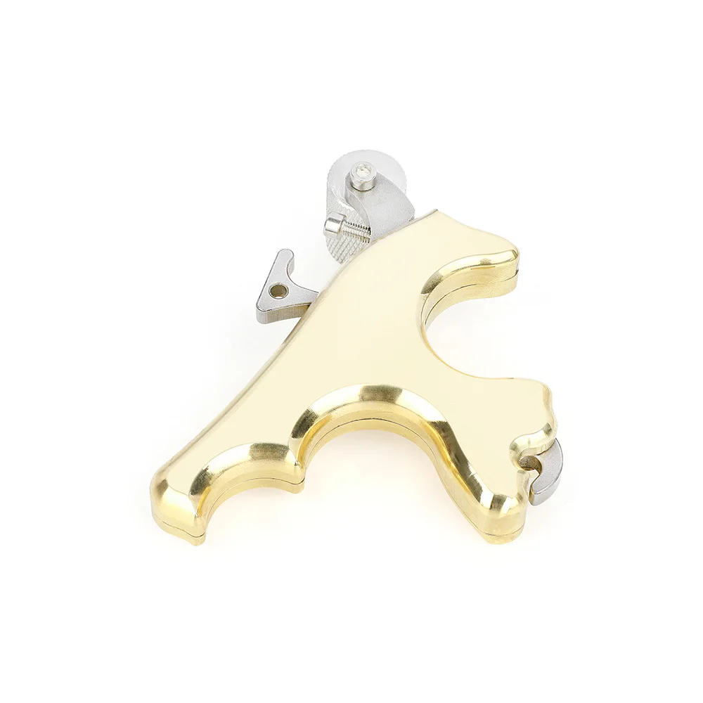 Liberación de latón, liberación de arco compuesto, 3 dedos, Manual, empuñadura de mano izquierda/derecha, dispensador de calibrador, herramienta de ayuda, accesorios de liberación de tiro con arco