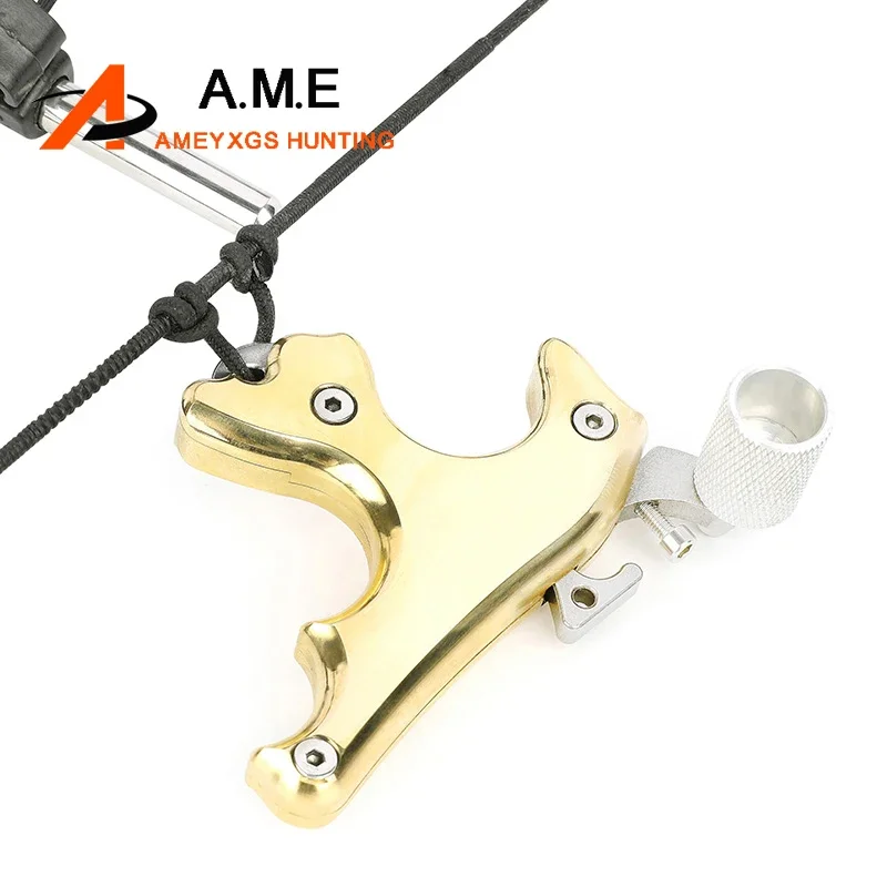 Liberación de latón, liberación de arco compuesto, 3 dedos, Manual, empuñadura de mano izquierda/derecha, dispensador de calibrador, herramienta de ayuda, accesorios de liberación de tiro con arco
