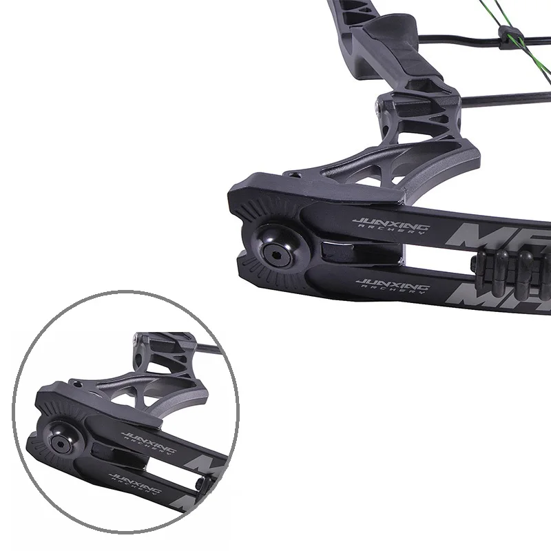 -Diseño de arco ancho de fibra de vidrio de alta dureza, mayor factor de seguridad que el arco estrecho, rendimiento de alto costo, buena sensación de tracción, disparo estable, amplio rango de ajuste de fuerza de tracción y distancia de tracción.
