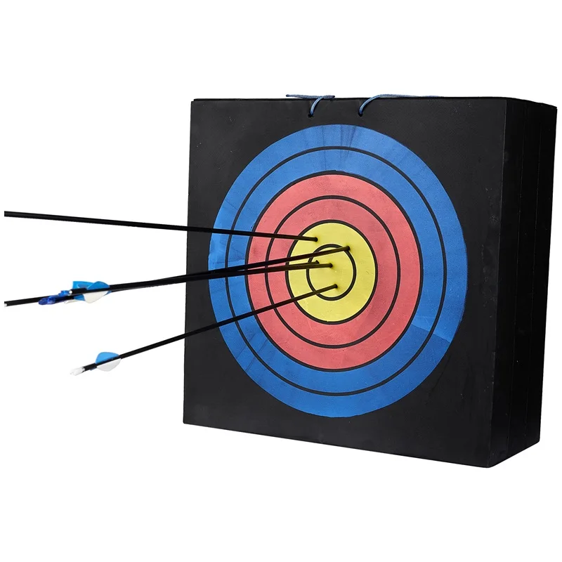 Objetivo bastante duradero. Aunque había agujeros a una distancia de 10 metros, fue disparado con una ballesta Sobek de 80 libras. Además, las plumas no están dañadas, aunque solo ligeramente. Y considerando el precio, el objetivo está perfectamente bien 👍
