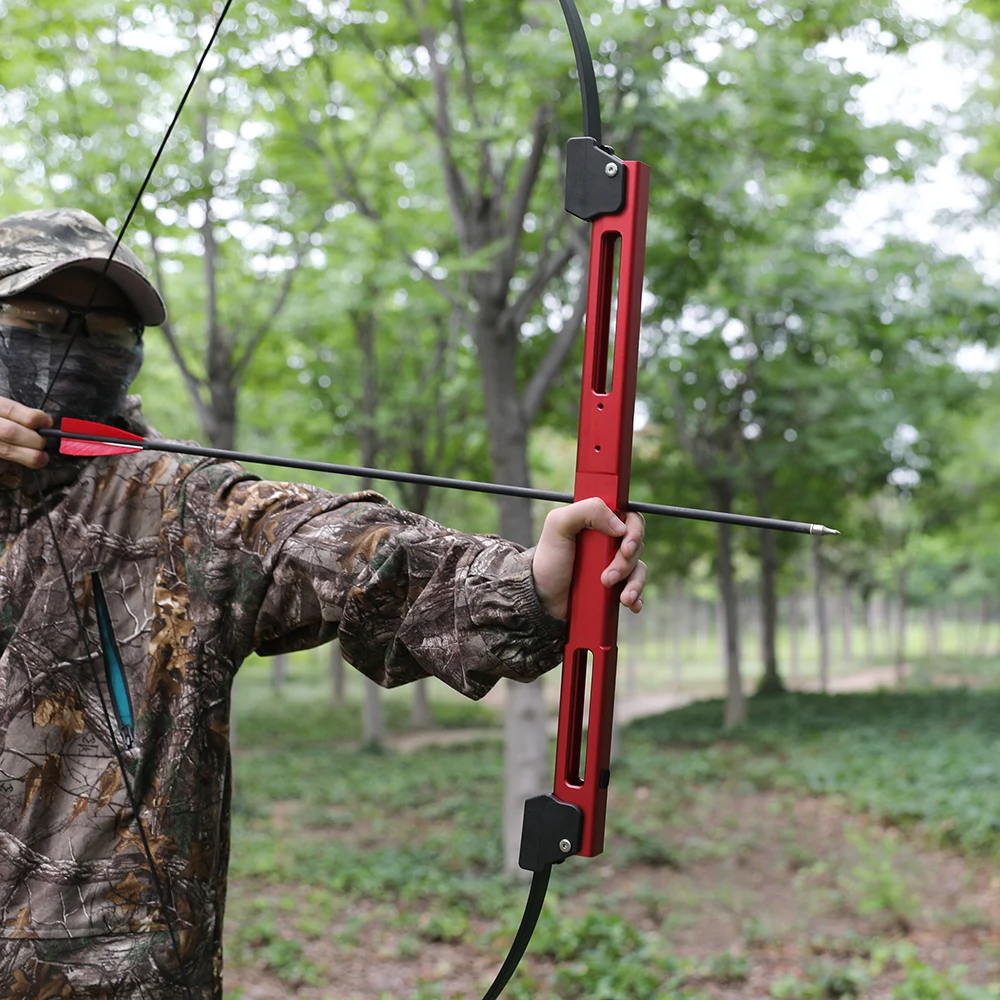 3.Diseño ergonómico, corte CNC de precisión total, tratamiento de superficie anodizado, la superficie del cuerpo del arco es lisa y cómoda de sostener.