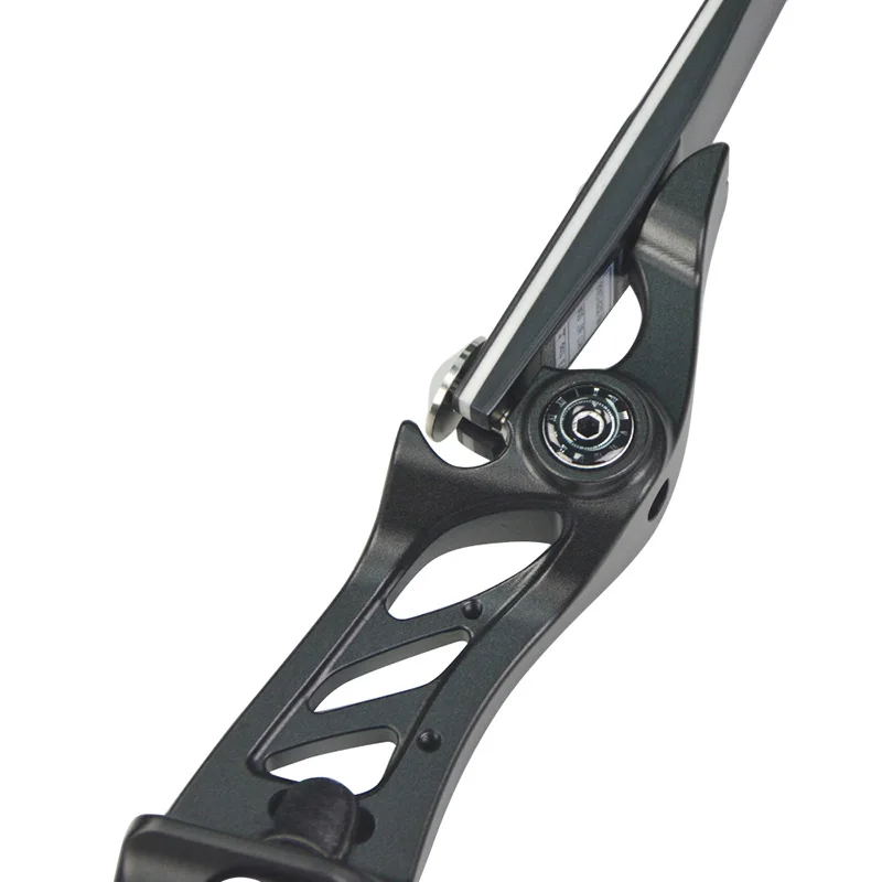 Material: aleación de aluminio de alta gama 6061, todo el mango del arco es procesado por CNC de alta precisión, la superficie es anodizada (mate), resistente a ácidos y álcalis, resistente a la corrosión.