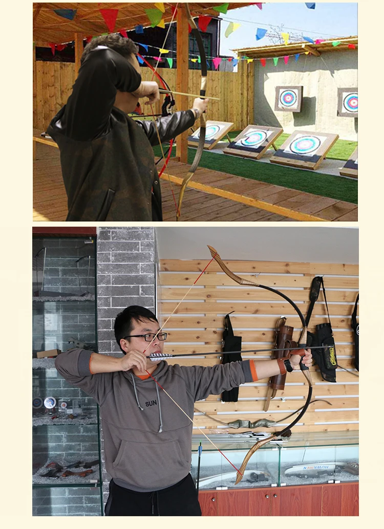 Arco recurvo de caza de Tiro con Arco Largo tradicional hecho a mano, puntas de madera, extremidades de resina epoxi, 30-50 libras