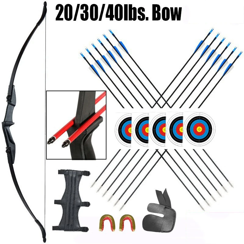 Arco recurvo desplegable de 57 ", 20-40 libras, mano derecha, mano izquierda, 12 Uds. De flechas de fibra de vidrio, para adultos principiantes, practicar tiro