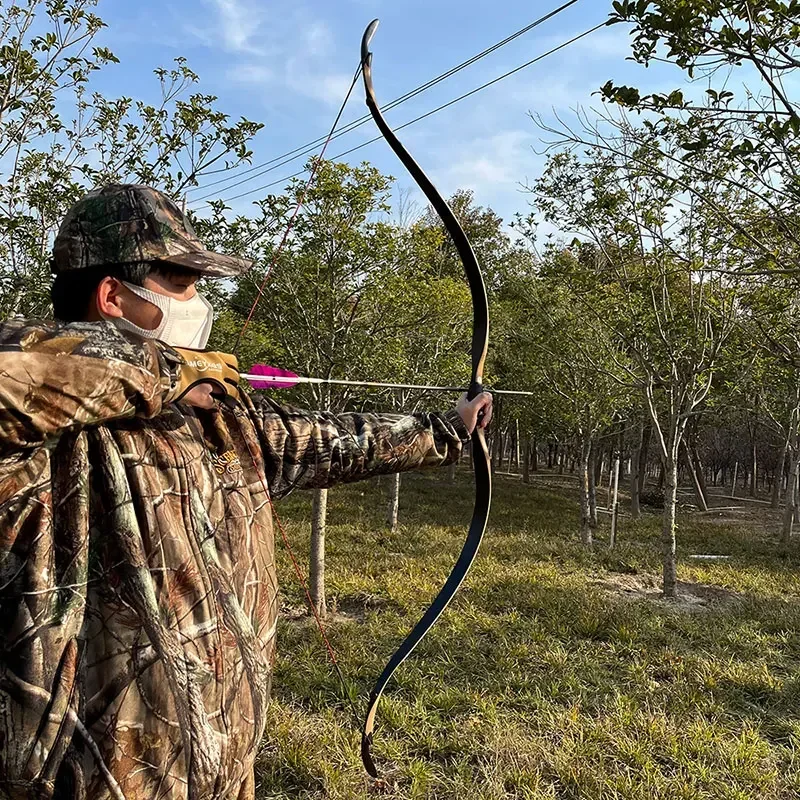 Arco recurvo de tiro con arco, arco largo tradicional laminado de 20-45 libras, potente de madera para tiro con flecha, accesorios para práctica de caza