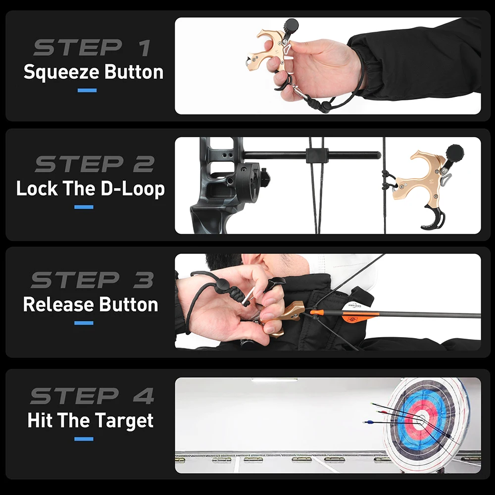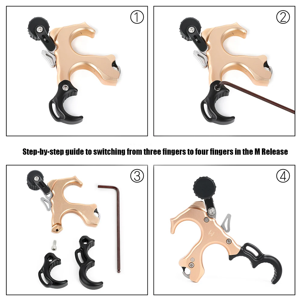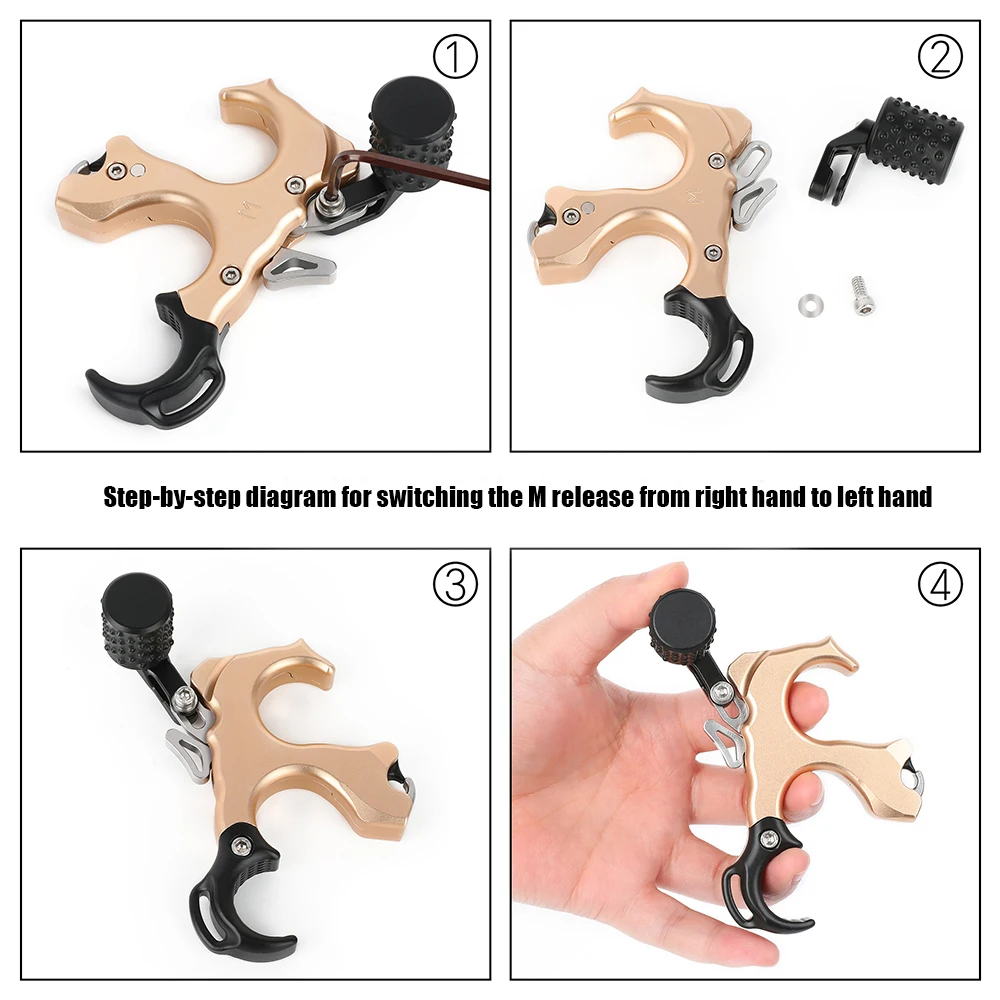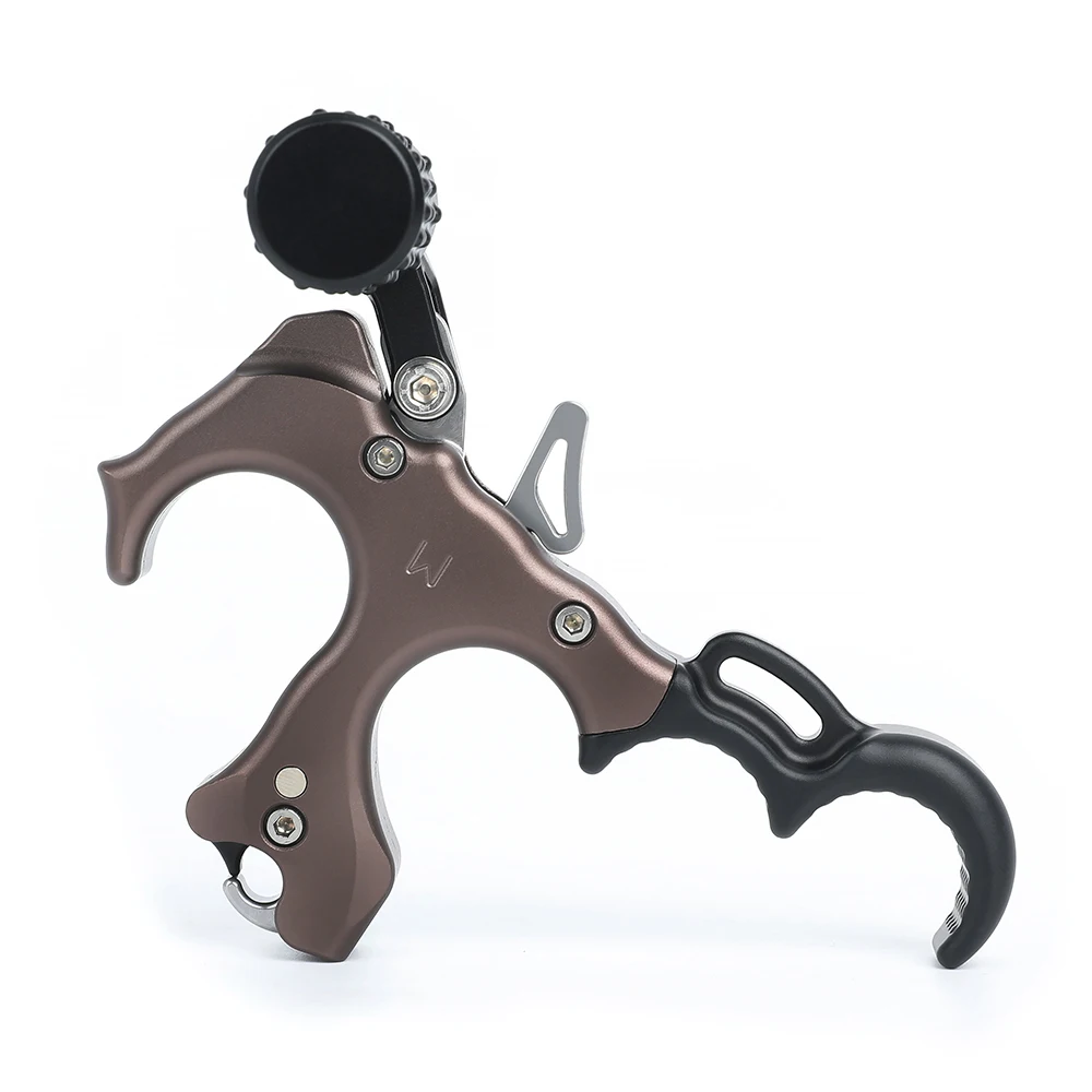 Features: 1. Durable Aluminum Alloy Construction: Built from high-strength aluminum alloy for a perfect balance of lightweight handling and long-lasting durability. 2. Fully Ambidextrous Design: Universally configured for comfortable and effective use by both left-handed and right-handed archers. 3. Adjustable Trigger Sensitivity: The sensitivity of the trigger mechanism is adjustable for a crisp, predictable release. 4. Finite Trigger Travel Adjustment: Allows for precise micro-adjustments to the trigger's travel distance for a customized feel. 5. Manual Jaws Operation: Features manually controlled jaws, giving the archer complete command over the release process. 6. Anti-Slip Finger Hook Design: The finger hooks are designed with an anti-slip feature to ensure a secure and stable grip.