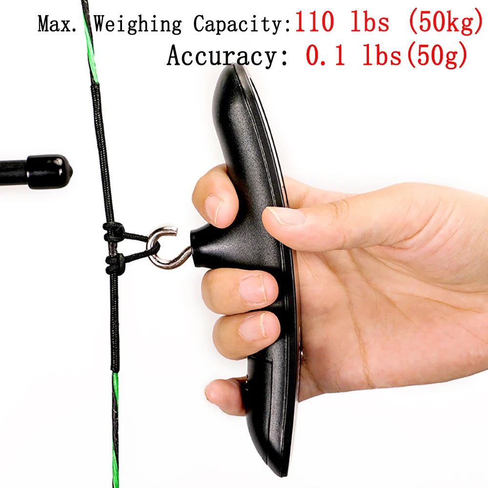 Instrumento de medición de peso de tiro de 0-110 libras para arquería, dinamómetro Digital eléctrico, peso máximo de sujeción para el accesorio de arco recurvo compuesto de caza.