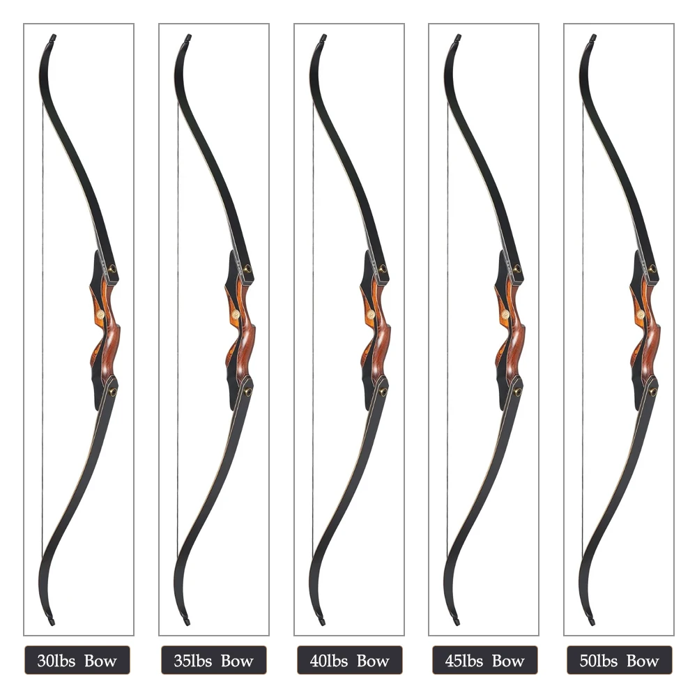 Arco recurvo de tiro con arco de 60 pulgadas 30/35/40/45/50lbs, arco de desmontaje, arco largo rojo para exteriores, arco de tiro de caza de madera