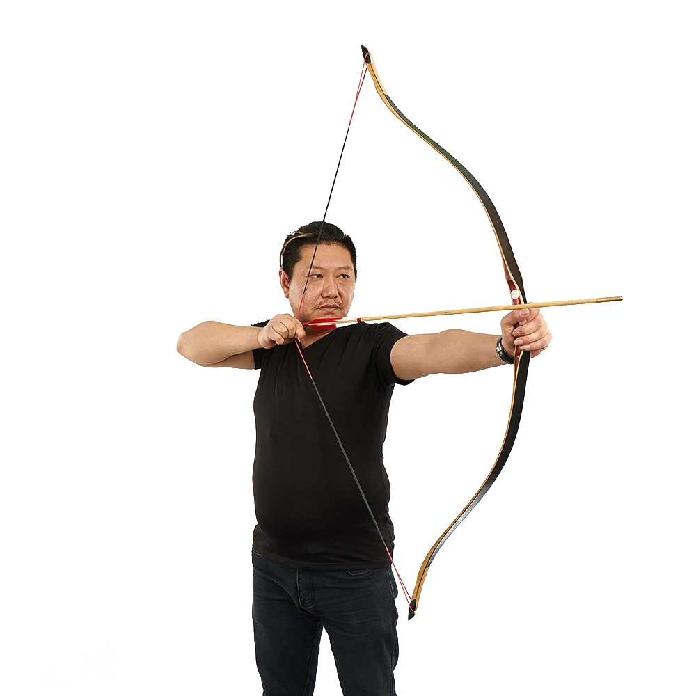 Arco tradicional de tiro con arco, 30-50 libras, arco largo, mano derecha, dibujo máximo