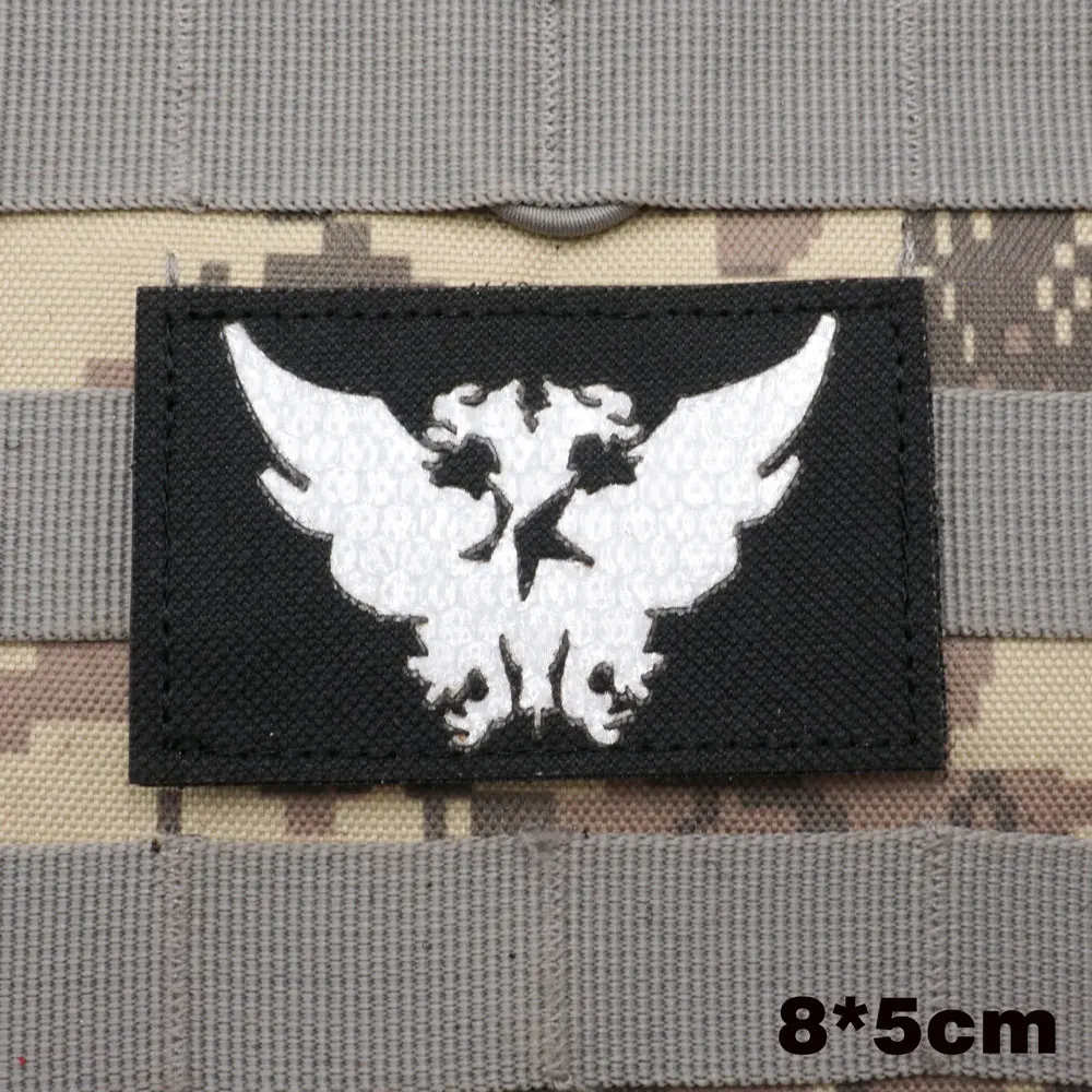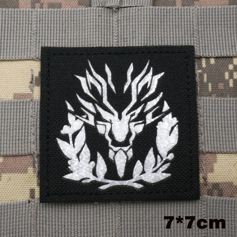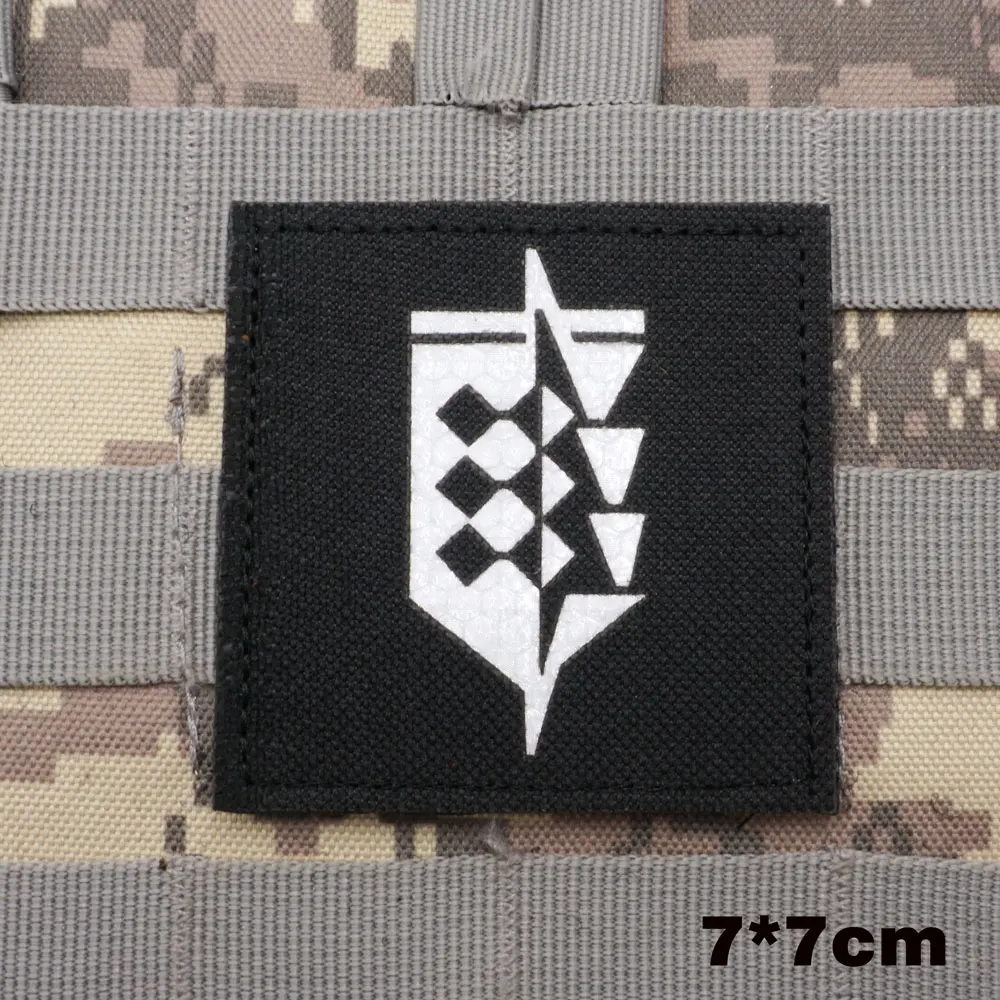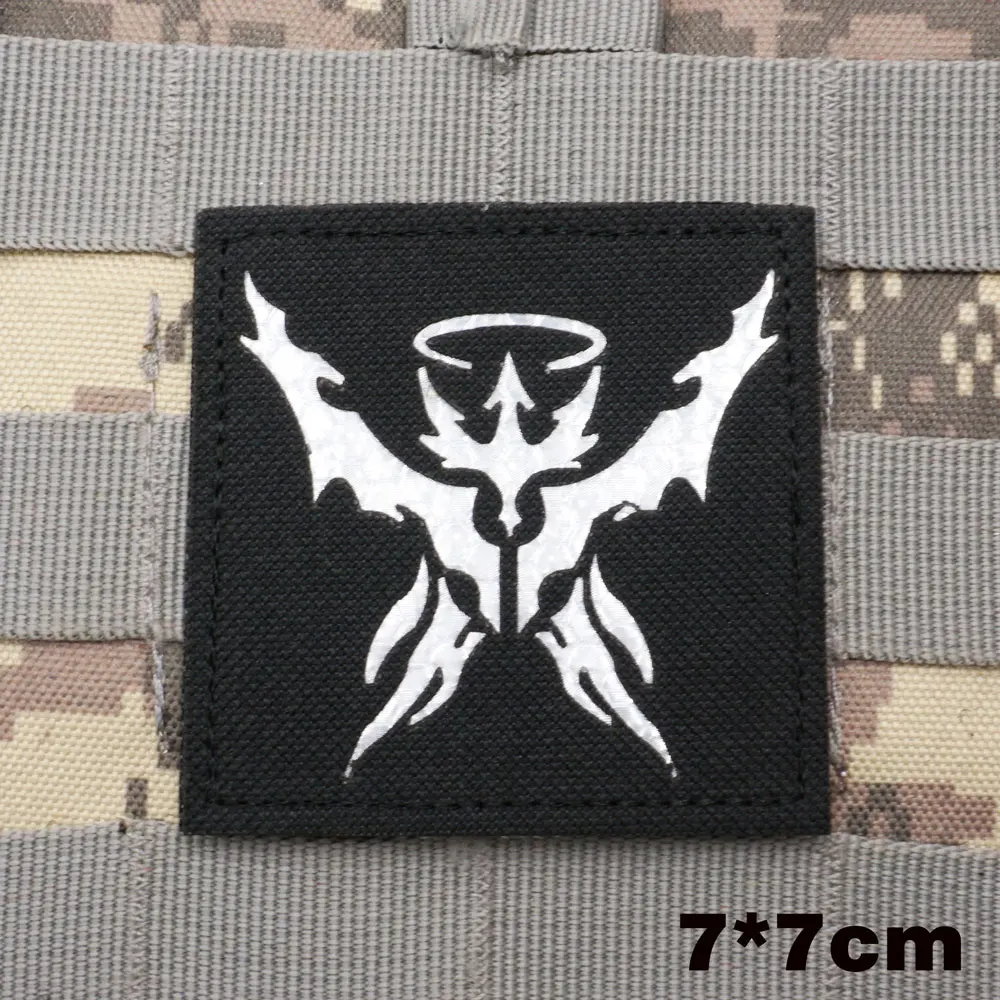 Insignia de moral de Arknights reflectante nocturno, parches de gancho y bucle de uso internacional de acero negro, pegatina para mochila de equipo al aire libre