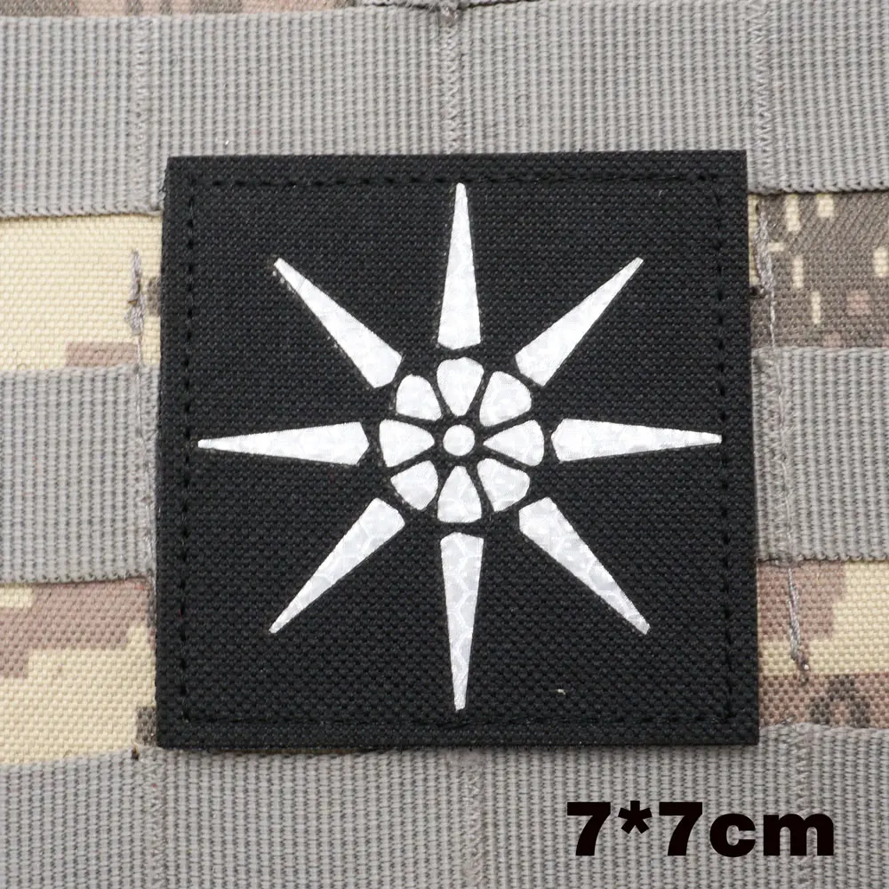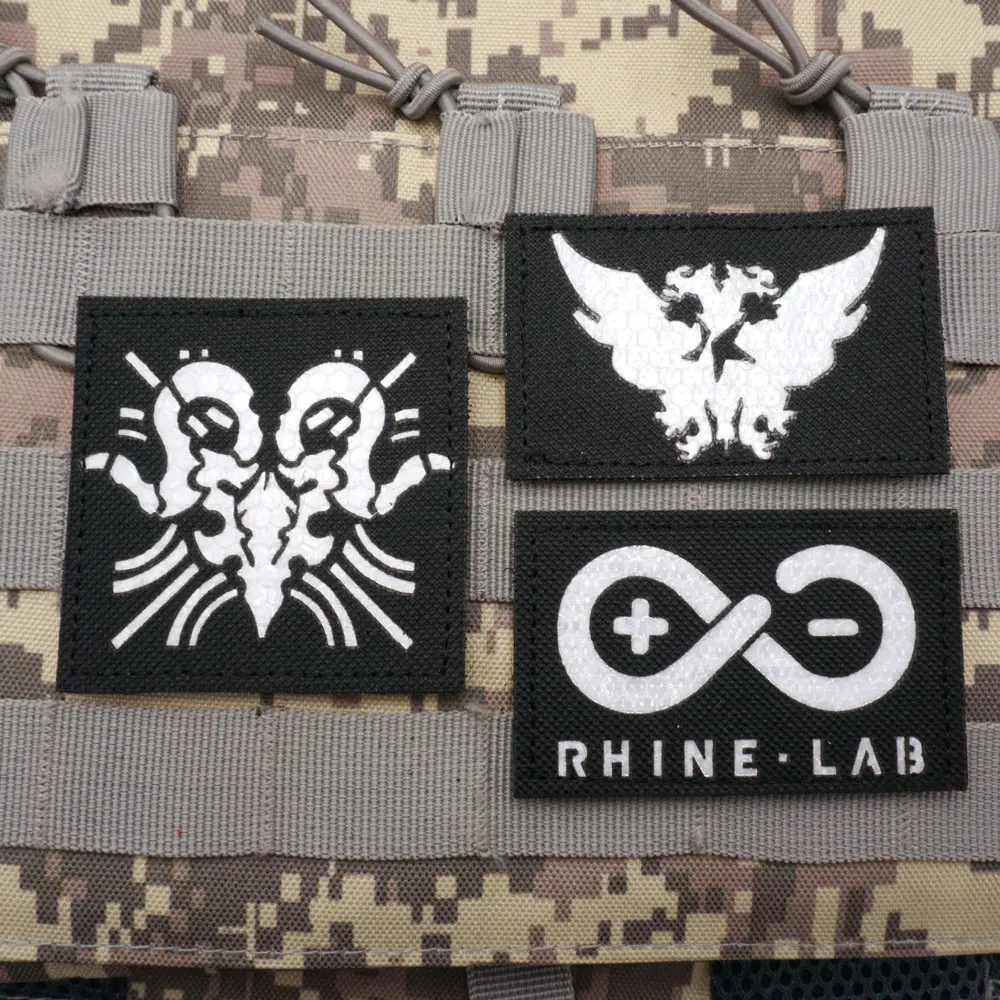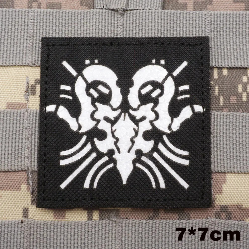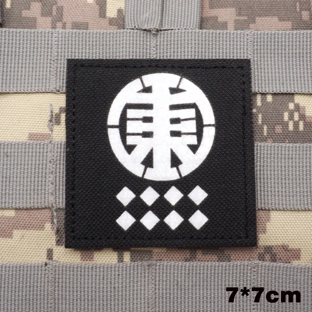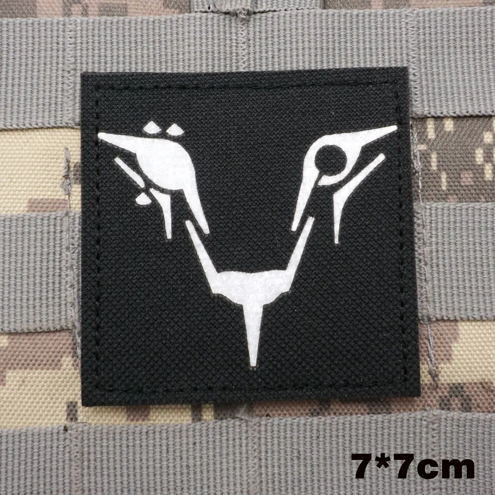 Insignia de moral de Arknights reflectante nocturno, parches de gancho y bucle de uso internacional de acero negro, pegatina para mochila de equipo al aire libre