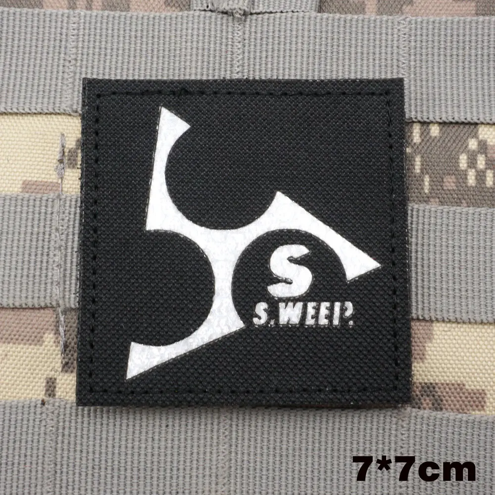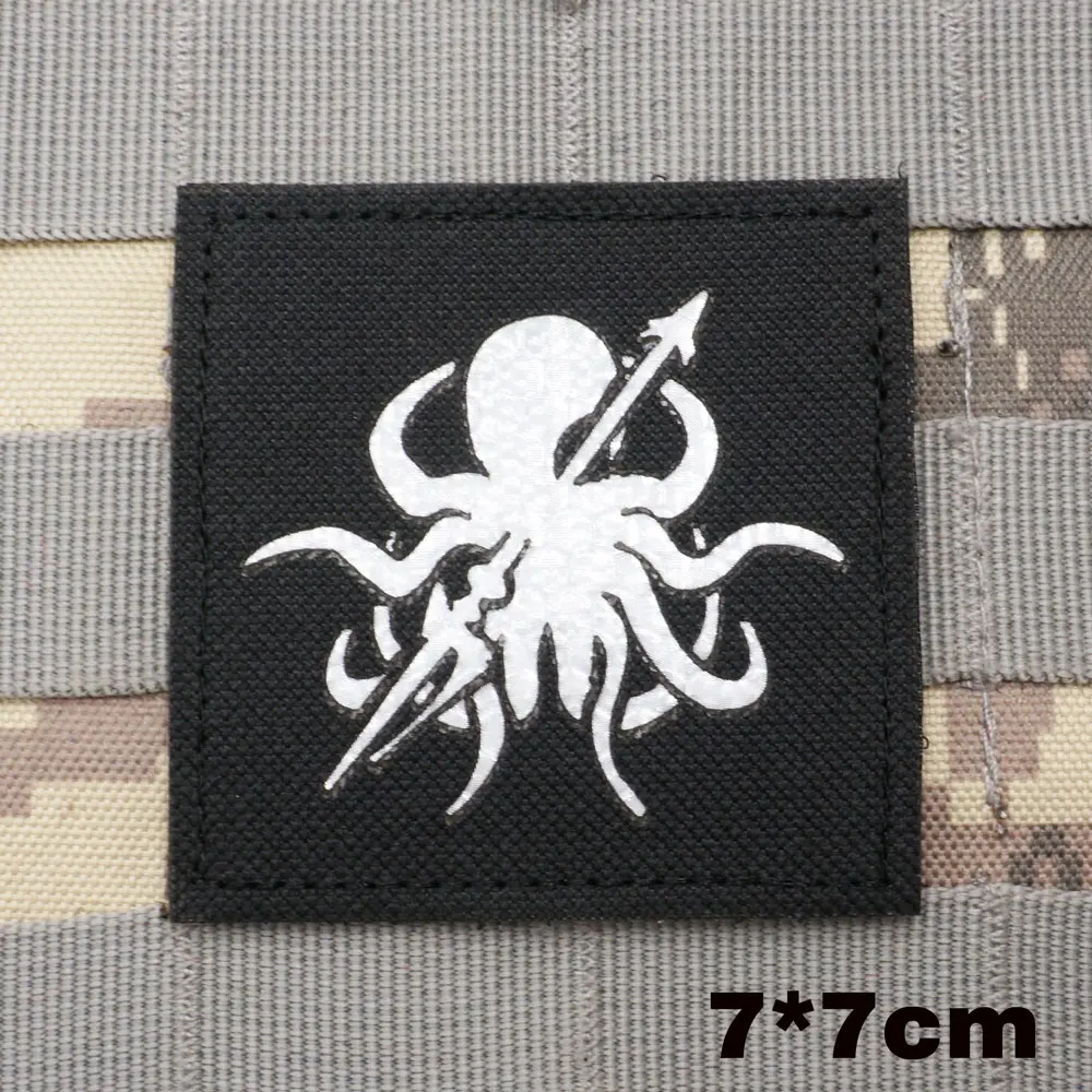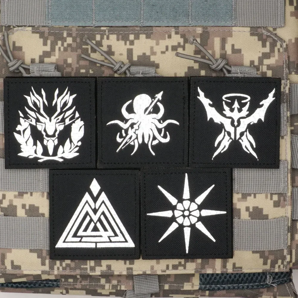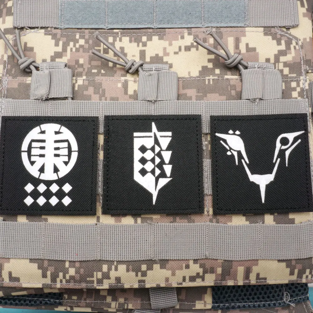 Insignia de moral de Arknights reflectante nocturno, parches de gancho y bucle de uso internacional de acero negro, pegatina para mochila de equipo al aire libre