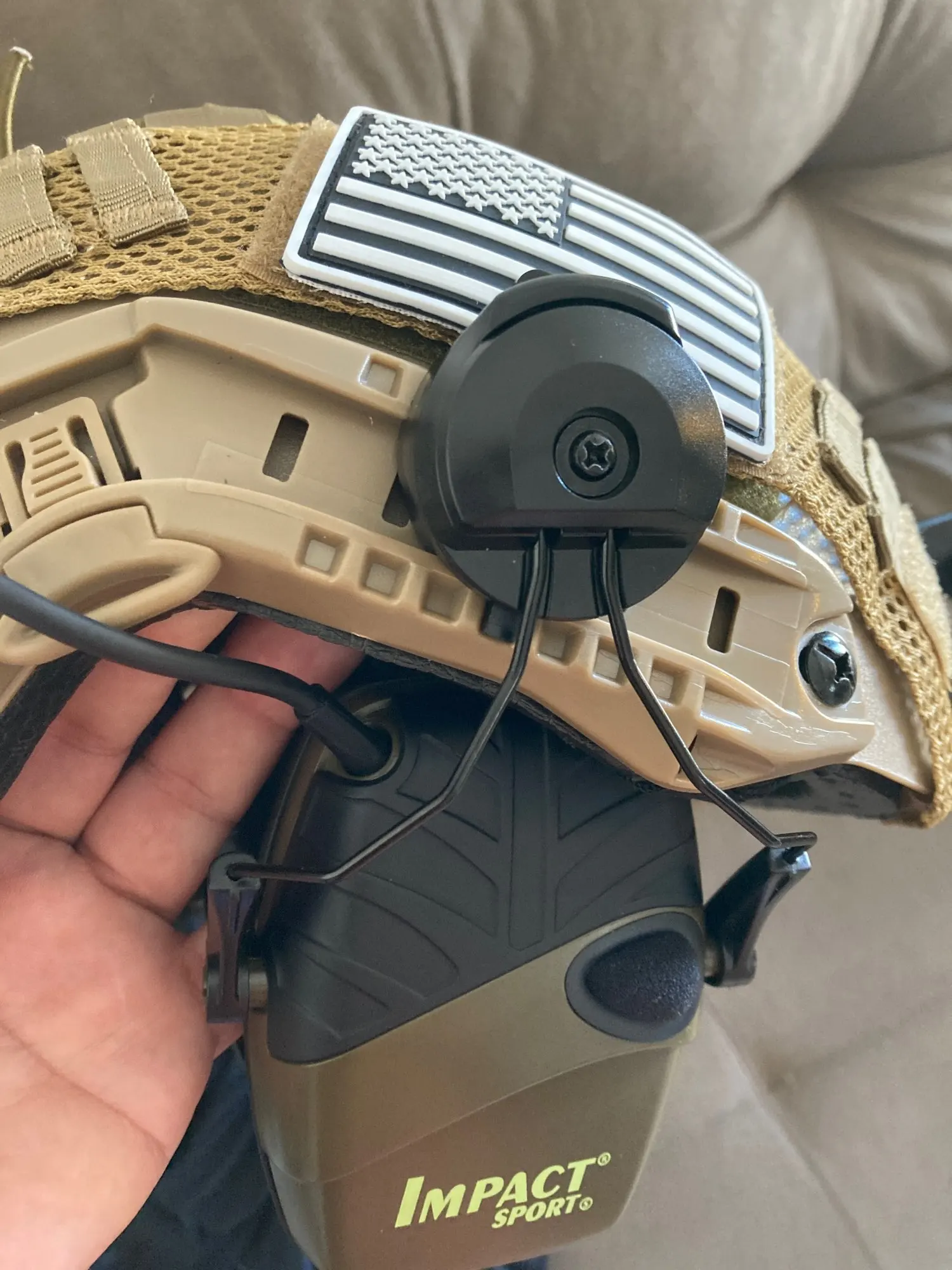Propósito: Utilice auriculares tácticos directamente sobre el casco táctico.