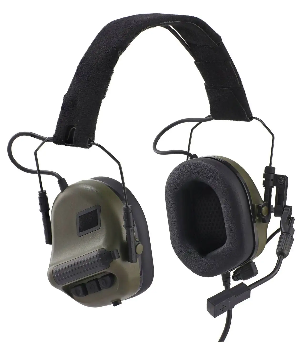 Auriculares tácticos con función de captación de sonido y reducción de ruido y versión para llevar la cabeza