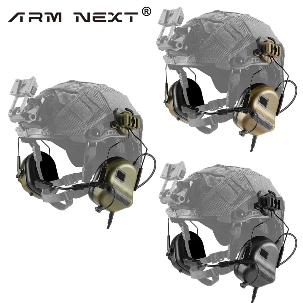 El ARM NEXT F20 es un protector auditivo de comunicación electrónica activado y viene con un juego de adaptadores de riel para casco para cascos FAST MT, ideal para usos tácticos avanzados.