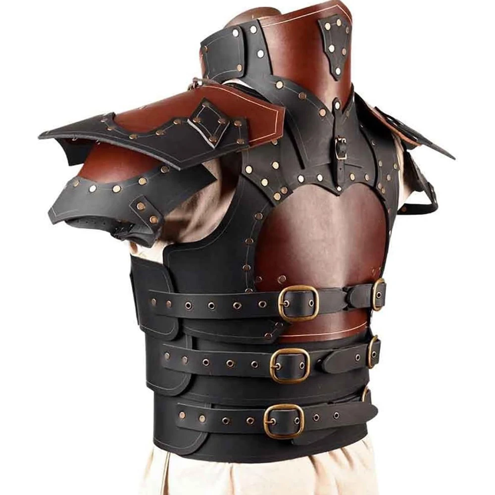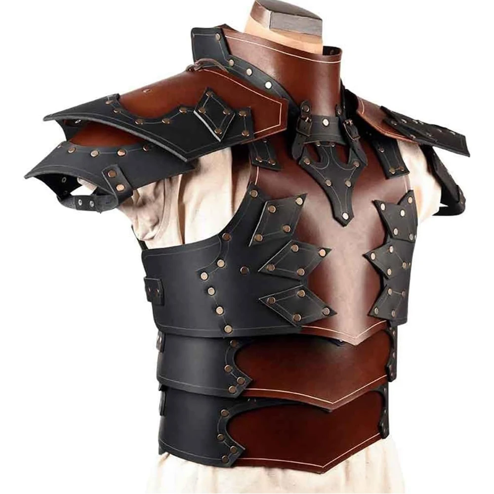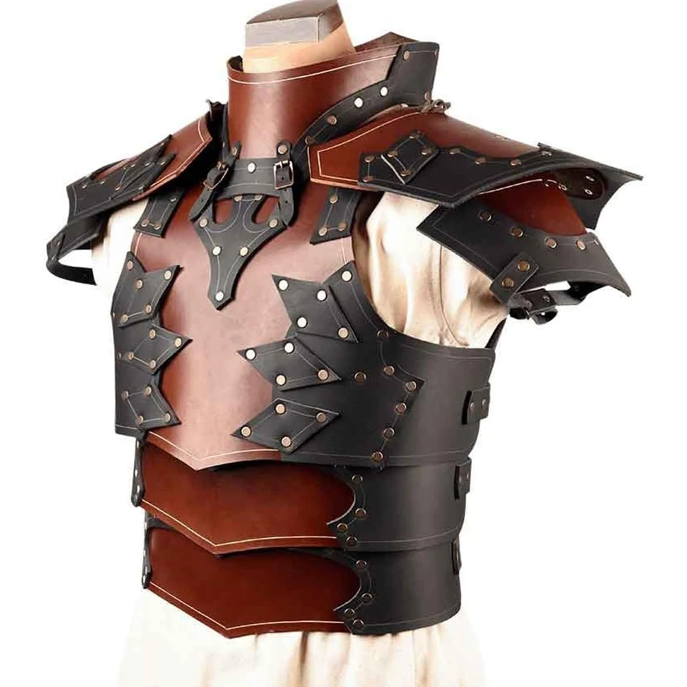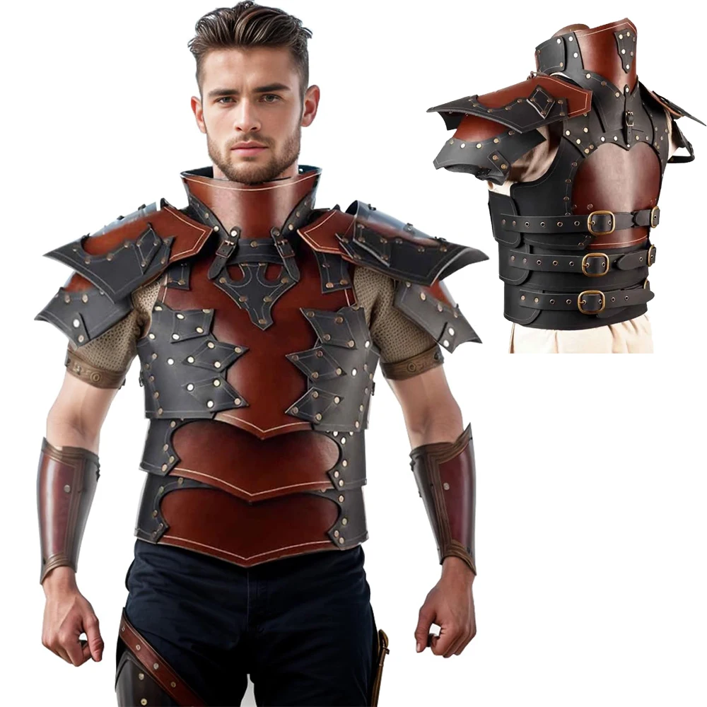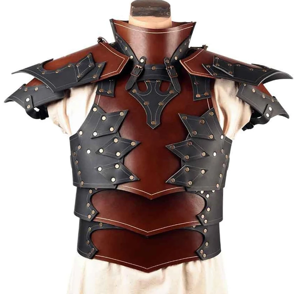 Armadura de cuero Vintage con cuello, armadura de pecho Medieval, cinturón de pecho de caballero Vikingo, armadura de guerrero, armadura de cuero ajustable