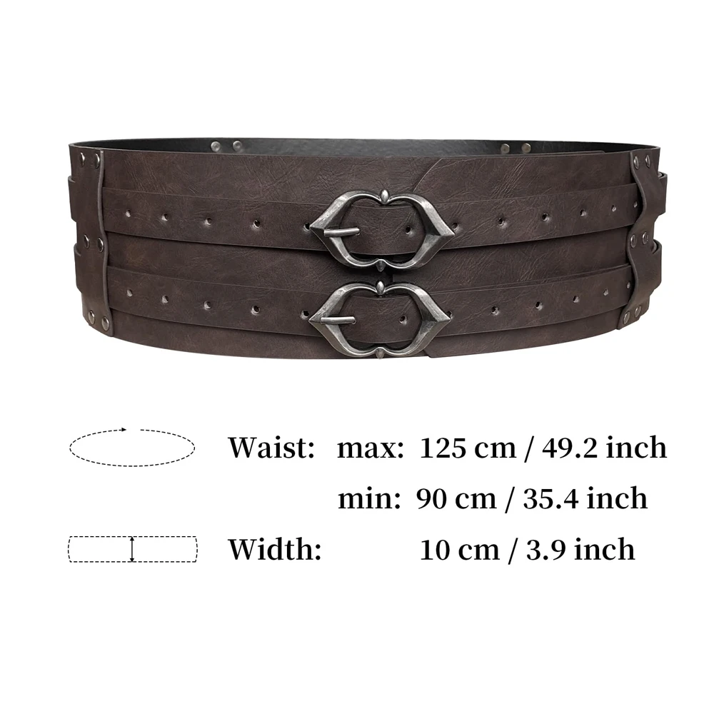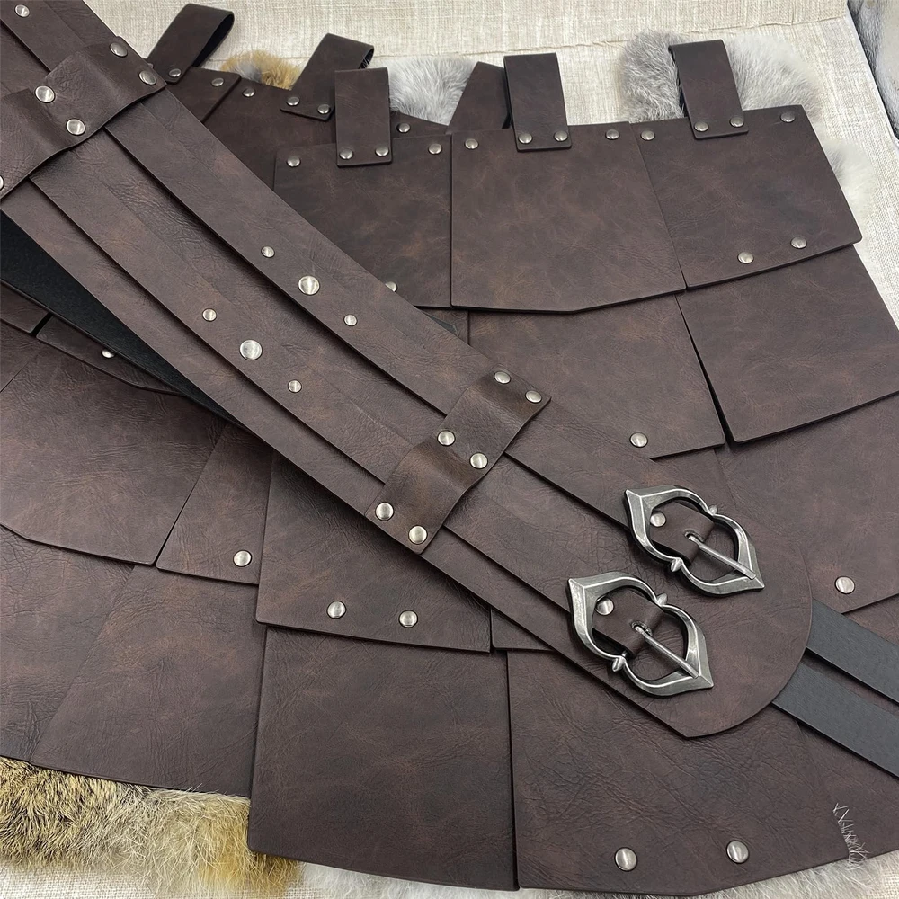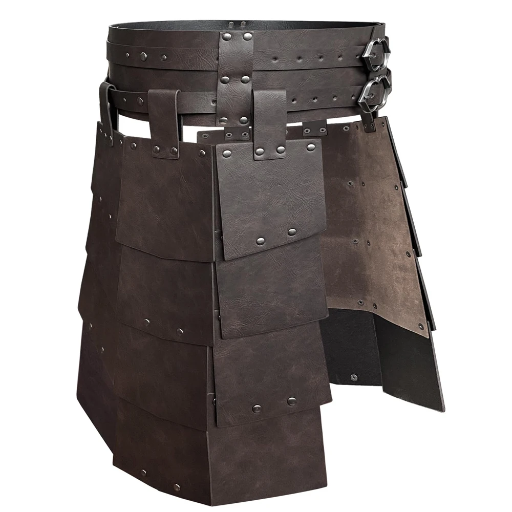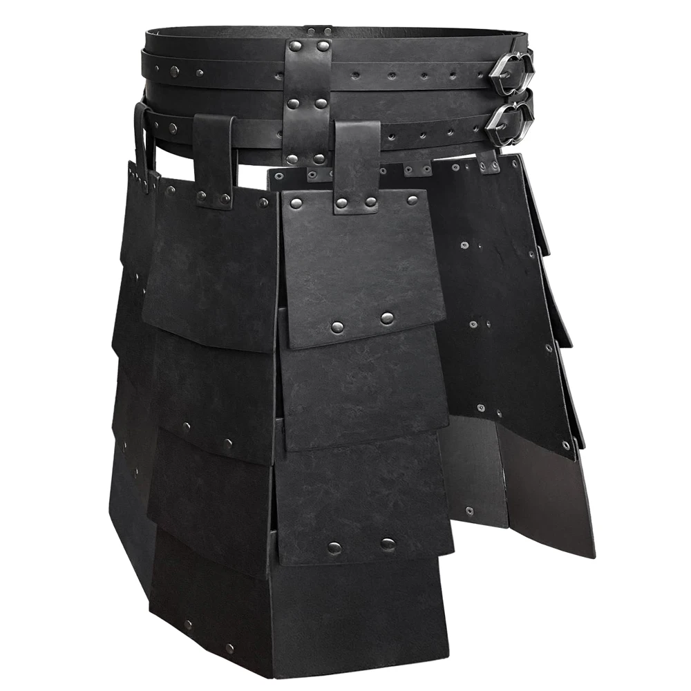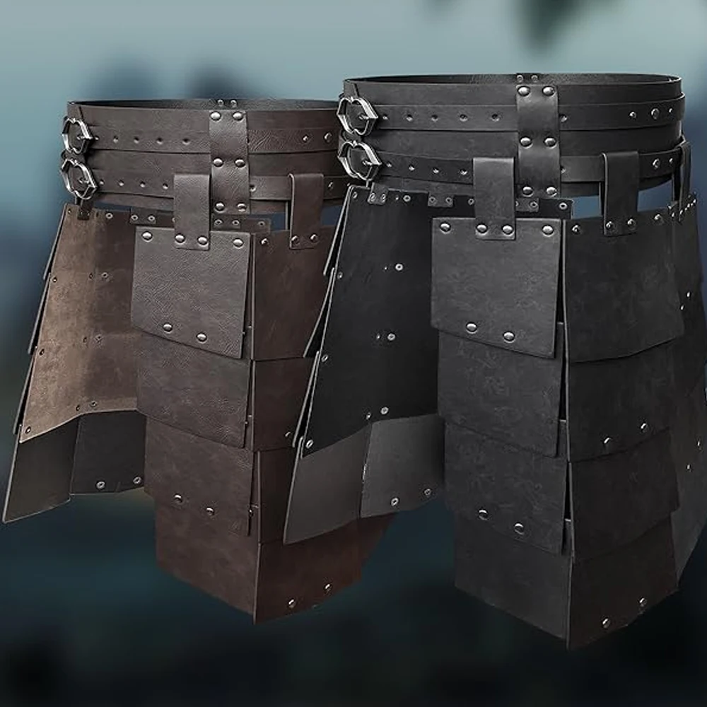 DISEÑO FRESCO: la combinación del cinturón ancho y las armaduras laterales de la falda crea un espectáculo visual fascinante, capturando la esencia del estilo medieval y el espíritu de un guerrero valiente.La figura impuesto del guerrero, acentuada por la armadura del muslo adornada, controla respeto y reverencia.