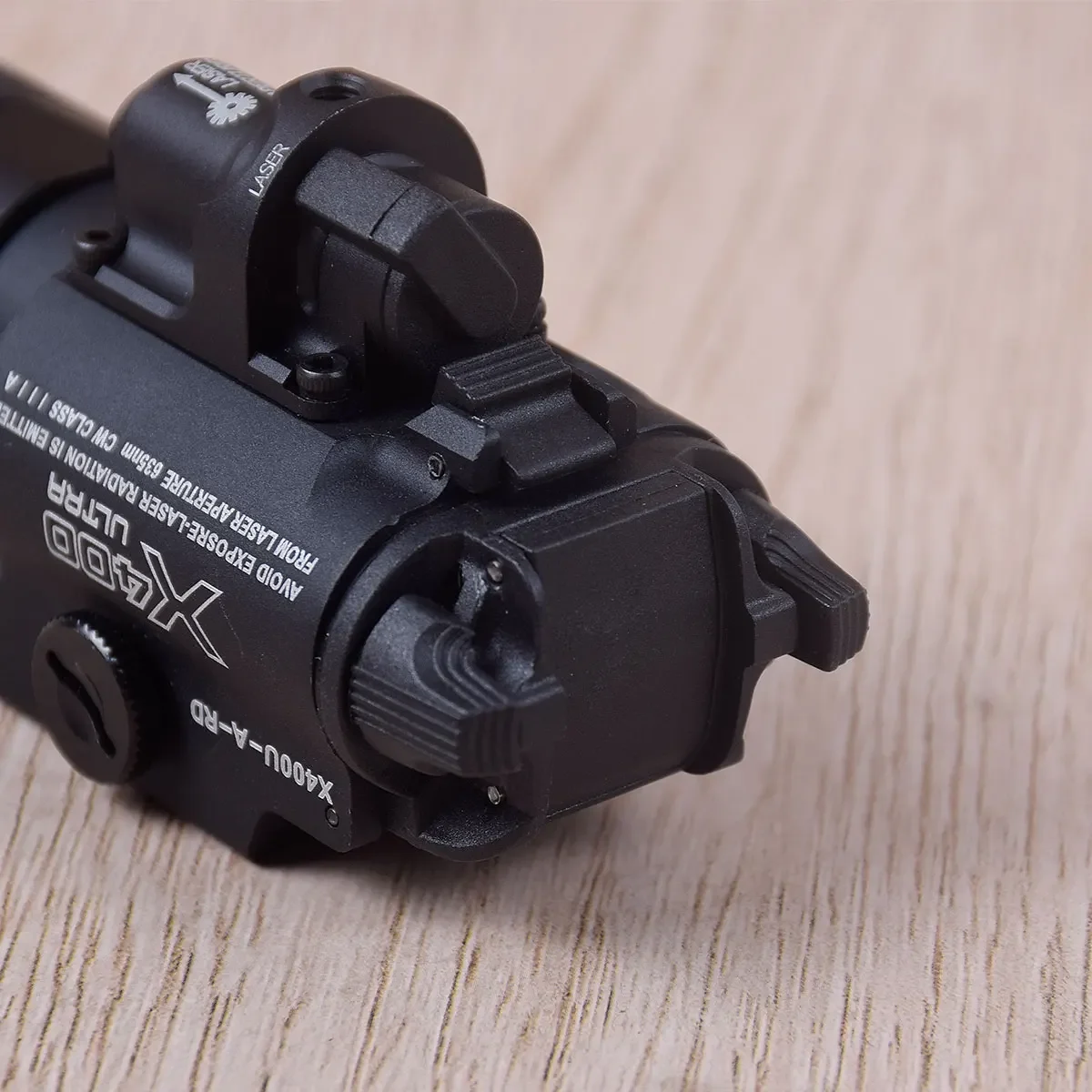 La X400 Ultra es una luz de armas de alto rendimiento con capacidades de puntería láser integradas.Cuenta con una potente luz LED que ofrece una potencia máxima de 600 lúmenes, proporcionando una iluminación brillante y enfocada en condiciones de poca luz.