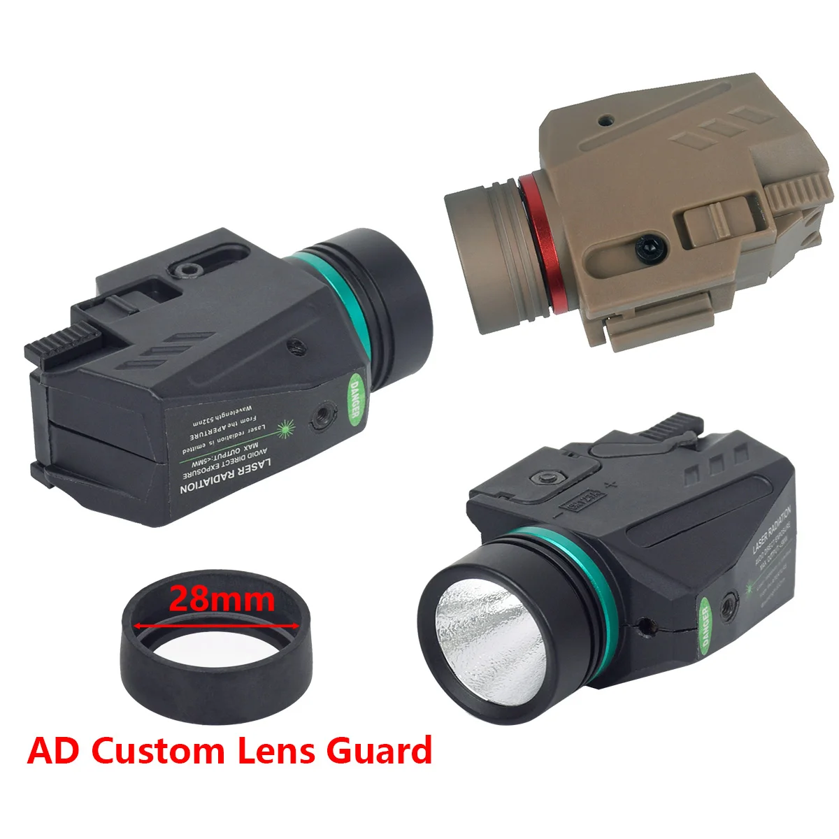 Armas tácticas de nailon Airsoft, pistola con luz LED compatible con riel de 20mm, linterna de explorador, linterna de caza, protector de lente personalizado AD