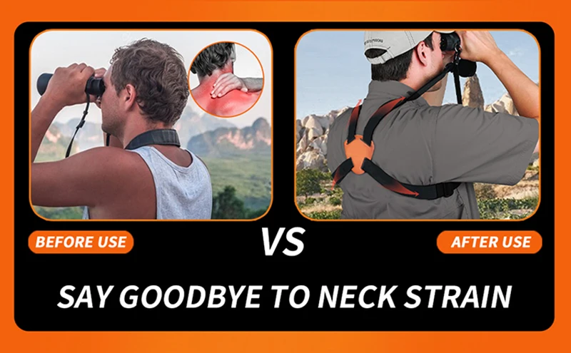 【ERGONOMICS DESIGN】 - The X-Shaped Double Shoulder binocular chest harness effectively distributes the weight of the binoculars evenly on your shoulders and back to reduce stress, avoid neck fatigue from carrying binoculars for long periods of time, and free your hands!