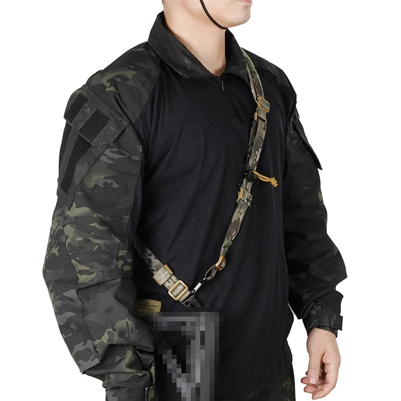Arnés de doble punto multifuncional de camuflaje para exteriores, correa de protección para pistola táctica con cuerda colgante