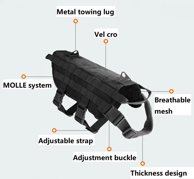 -El molle en ambos lados del arnés para el uso de cualquier bolsa MOLLE, como bolsas de revistas, botellas de agua, etc.
