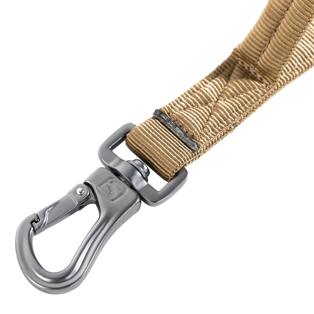 Gancho de aleación de zinc. Esta Correa táctica para perros es nuestro producto mejorado con hebilla de metal de liberación rápida, el gancho de metal grueso de aleación de zinc está hecho de material de aleación de zinc de alta calidad, más fuerte que antes, puede soportar 300kg de tracción a través de la prueba real.