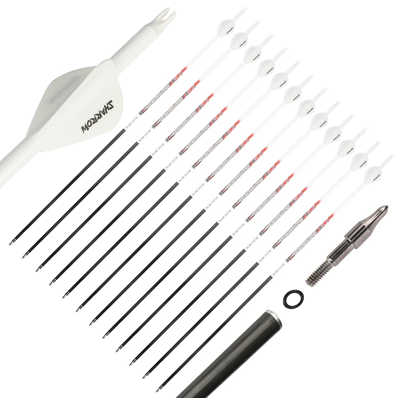 Arquero de tiro con arco de carbono puro XT, eje de flecha id6.2 mm, Spine300, 350, 400, 500, 600, 700, 800, 6/12 piezas