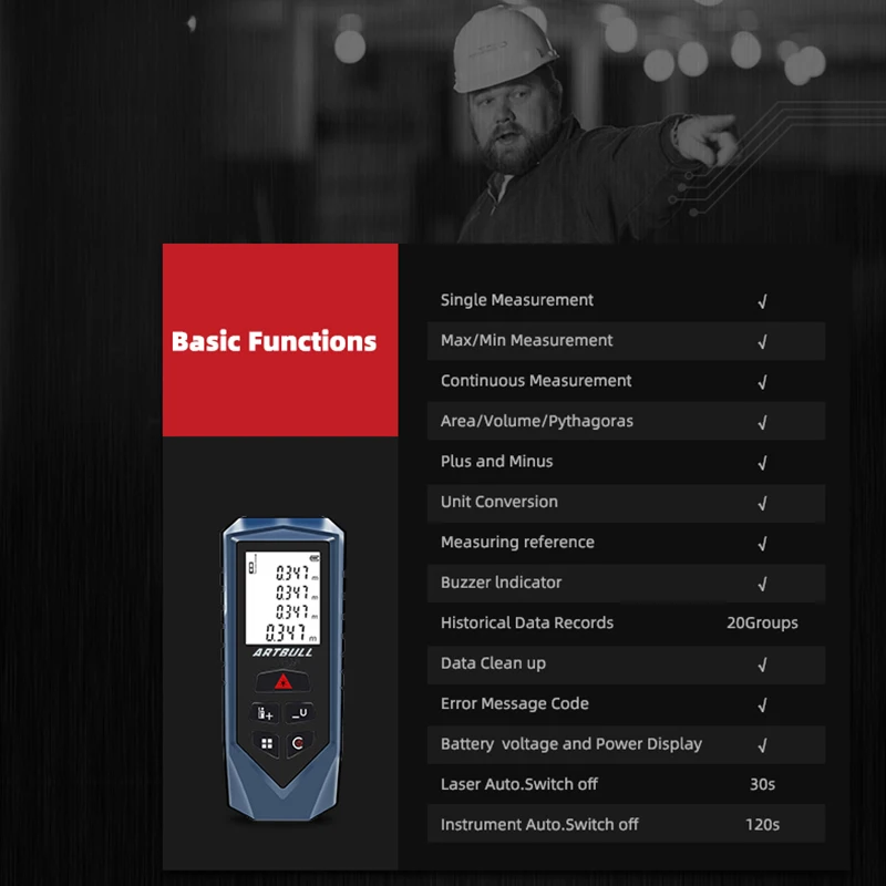 ARTBULL 100m Telémetro láser infrarrojo 50m Medidor de distancia láser digital Cinta métrica