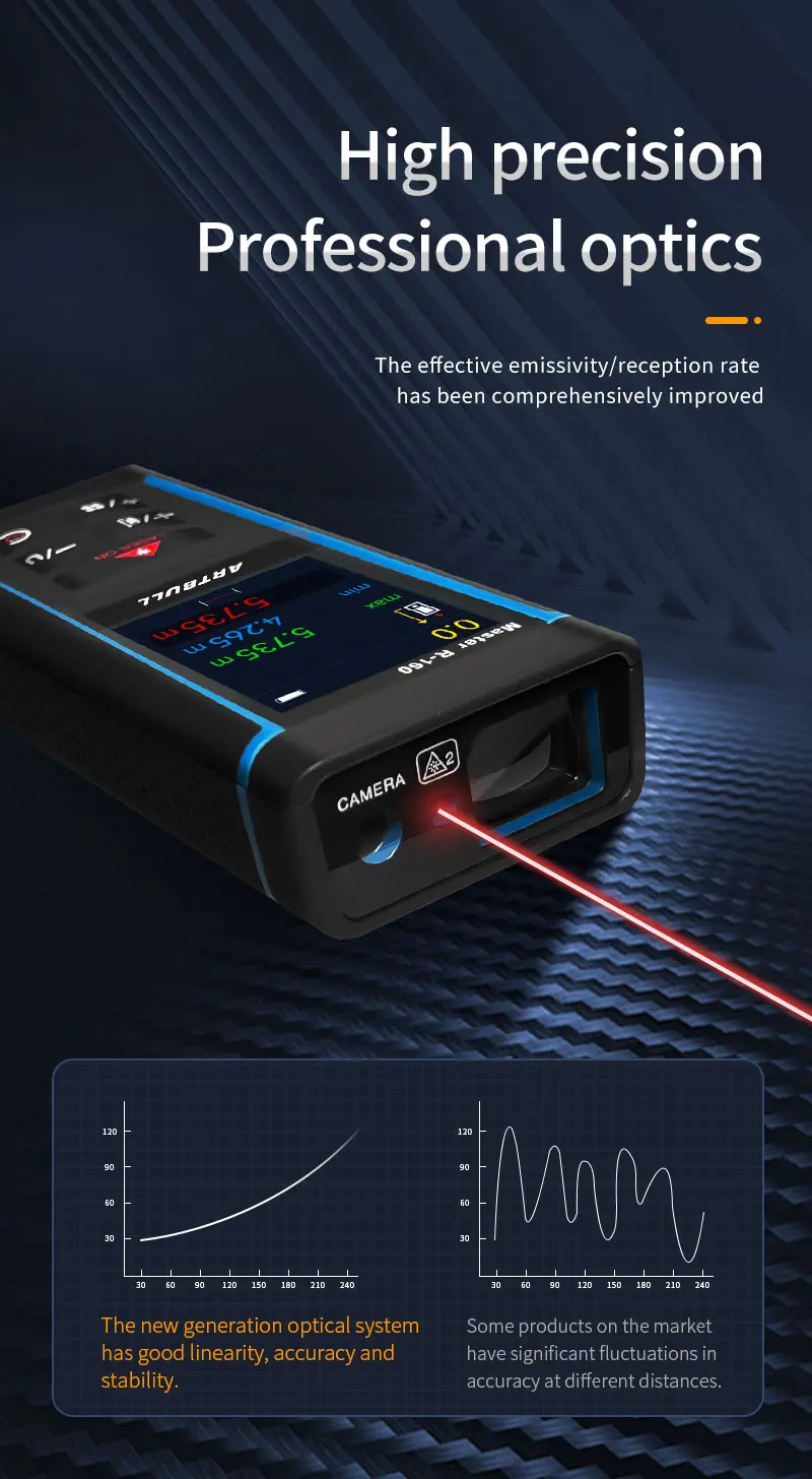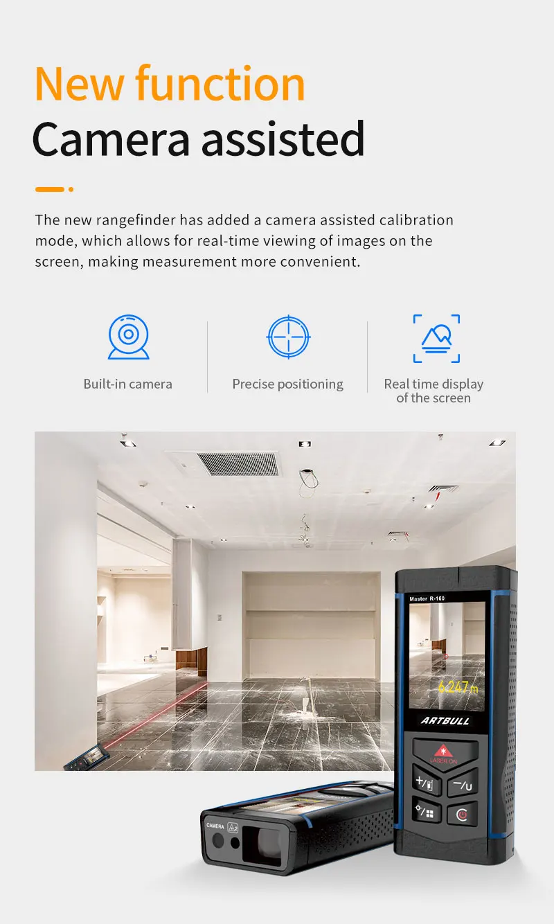 ARTBULL-telémetro láser de 160m, medidor de distancia recargable con cámara, pantalla a Color, 80m
