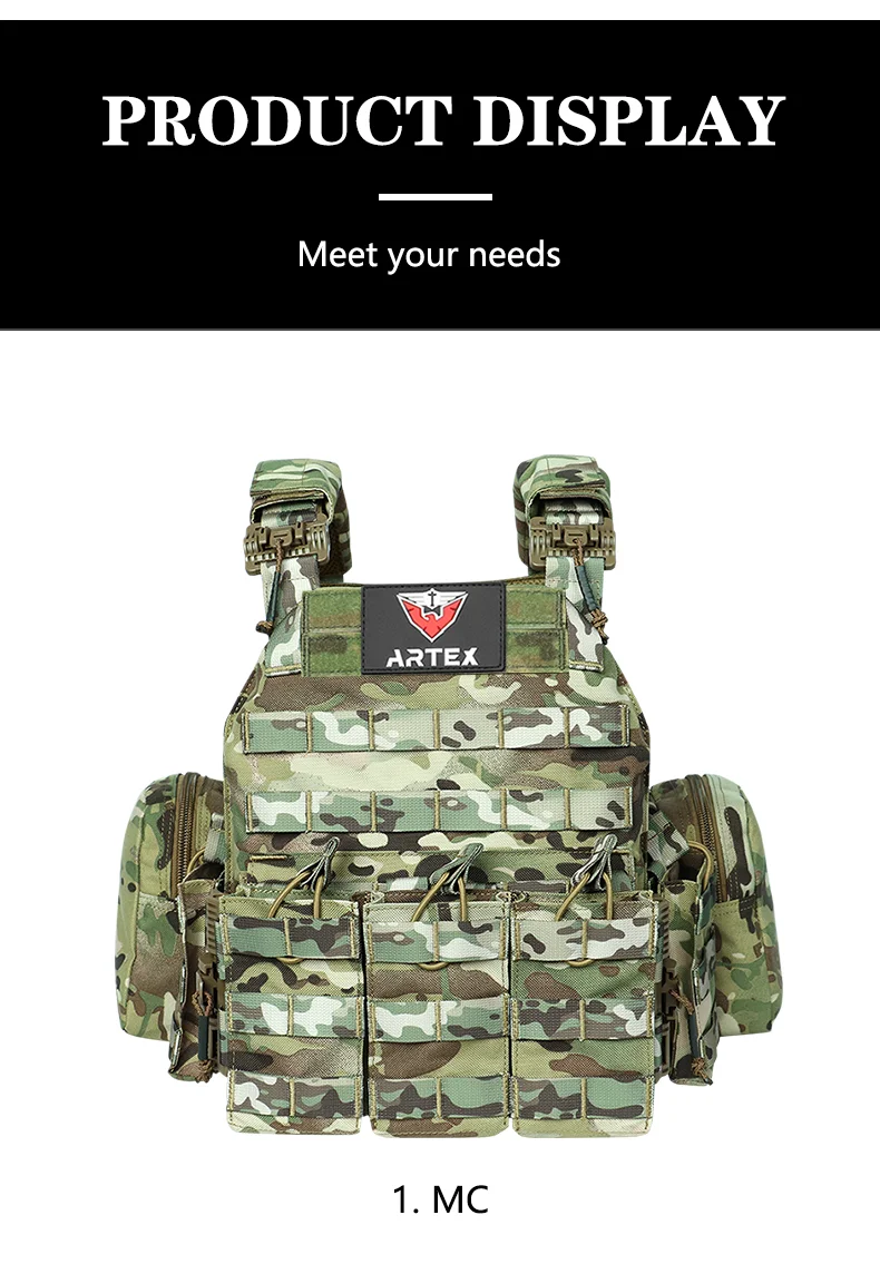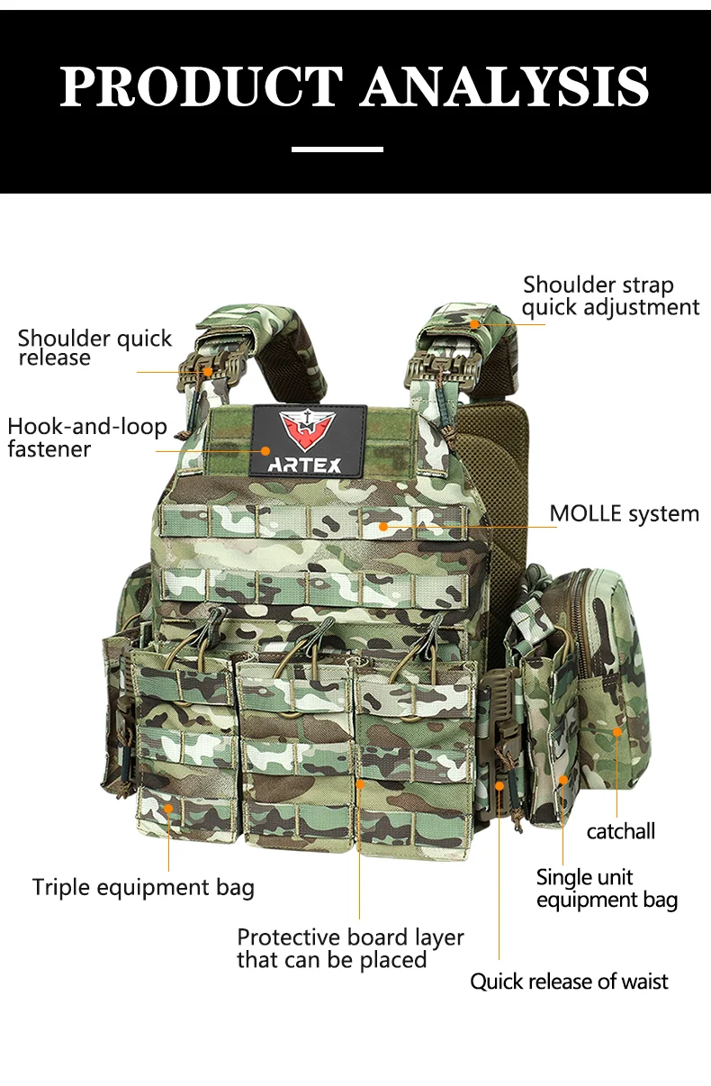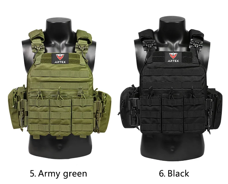 Artex 1000D portador de placa de liberación rápida 6094K chaleco táctico chaleco de caza protector ajustable Molle Airsoft chaleco
