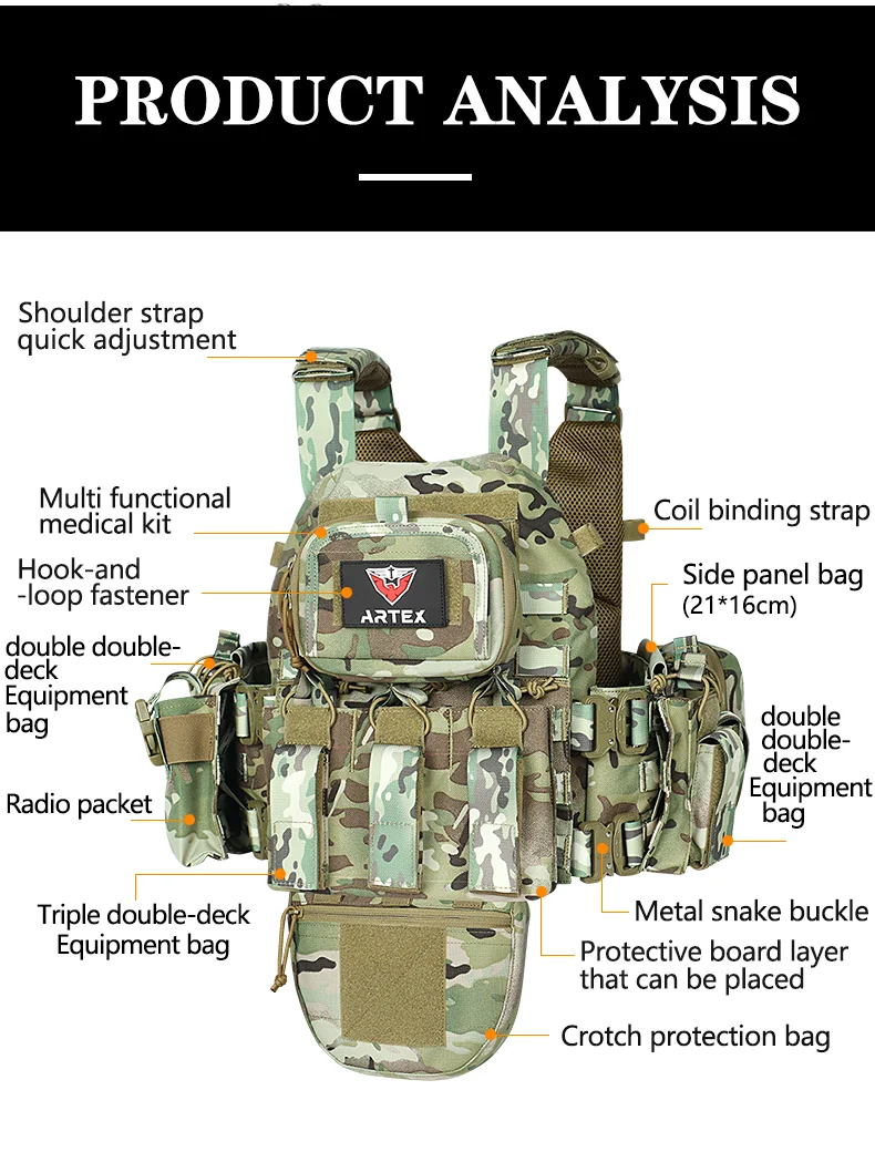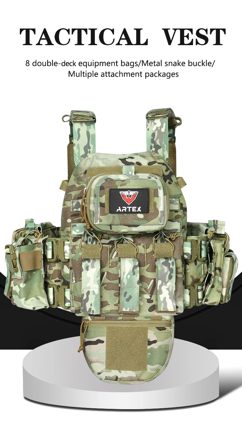 Artex Chaleco táctico personalizado portador de placa camuflaje 1000D Oxford Chaleco de seguridad táctico de liberación rápida hombres