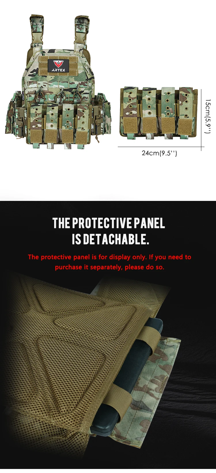 Artex Molle Chaleco táctico protección corporal cazador Chaleco táctico camuflaje chaqueta de pesca portador de placa de entrenamiento