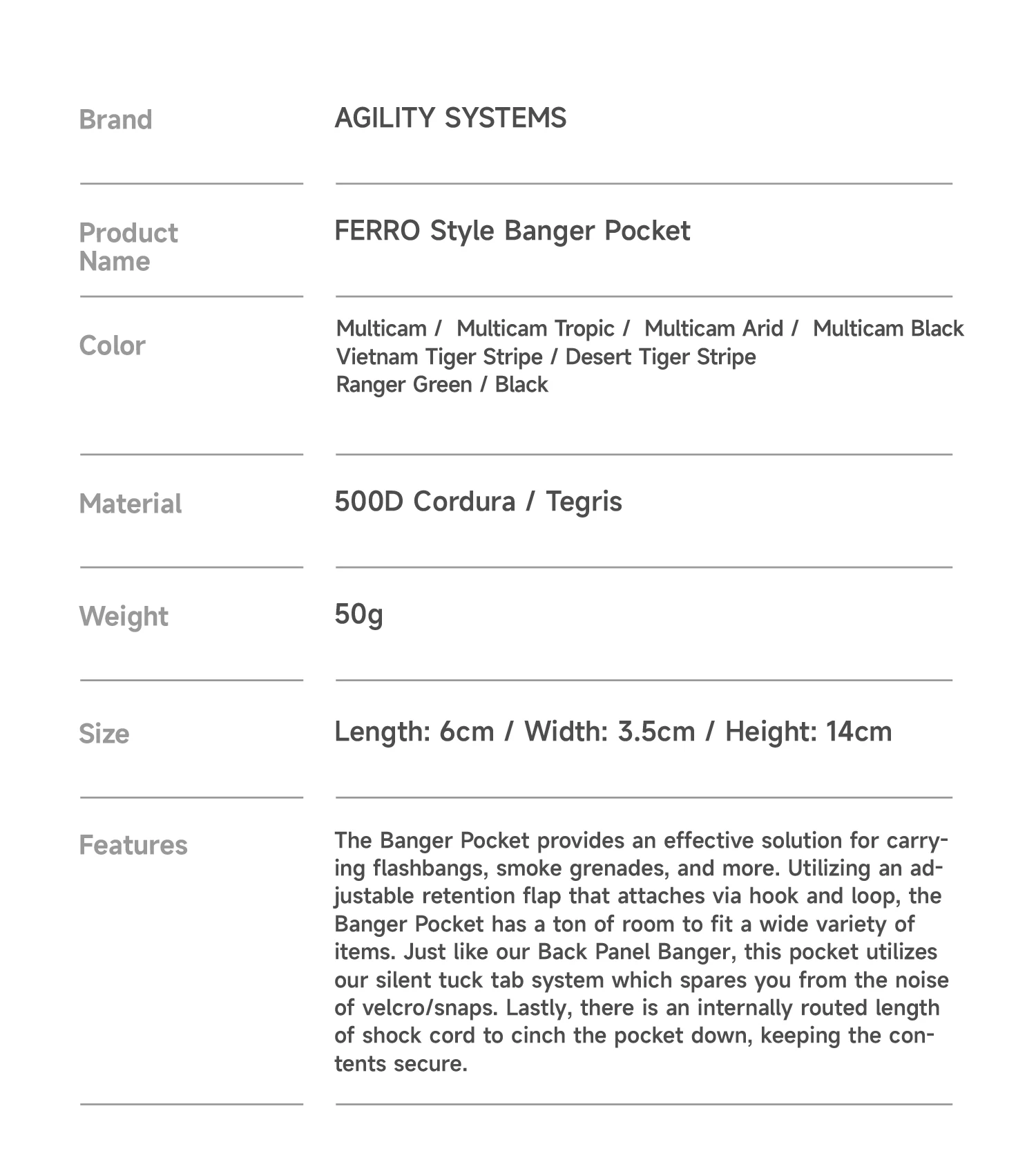 AS Smart System FERRO Banger Pocket Flash Granada Bolsa de almacenamiento, raya de tigre importada 500D
