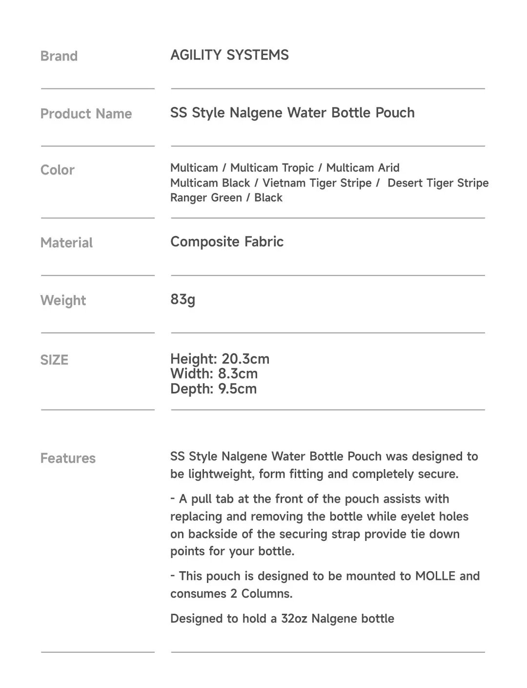 AS Smart System, replicación de cabeza de lobo SS, bolsa para botella de agua Nalgene, bolsa de accesorios tácticos