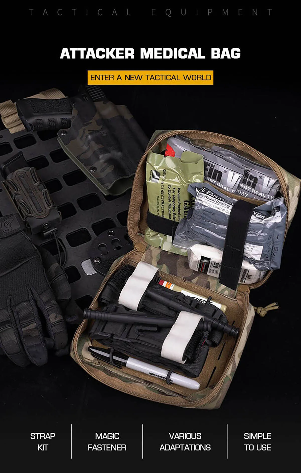 ENTER A UN NUEVO MUNDIAL TÁCTICO con ATTACKER MEDICAL BAG.Más que una simple bolsa, este es un sistema de primeros auxilios modular completo diseñado para una organización misión crítica.Con un peso de sólo aproximadamente 0,28 kg y un tamaño de 20 cm (largo) x 17 cm (alto) x 7 cm (profundidad), combina un interior altamente personalizable con un sistema de fijación versátil, listo para sostener y organizar de forma segura sus suministros esenciales para salvar vidas para cualquier escenario.