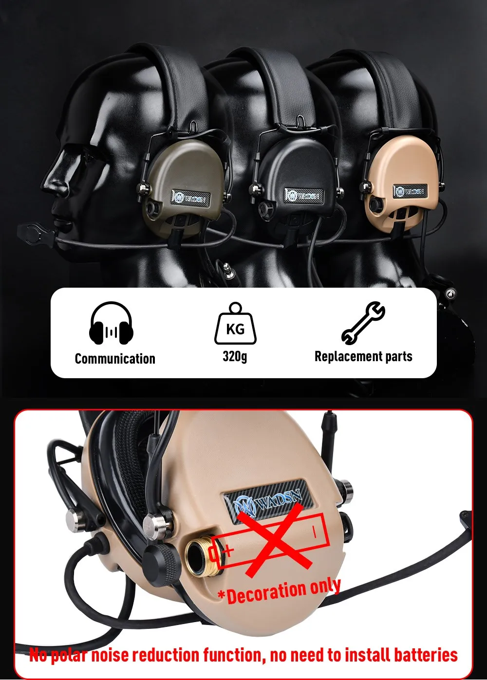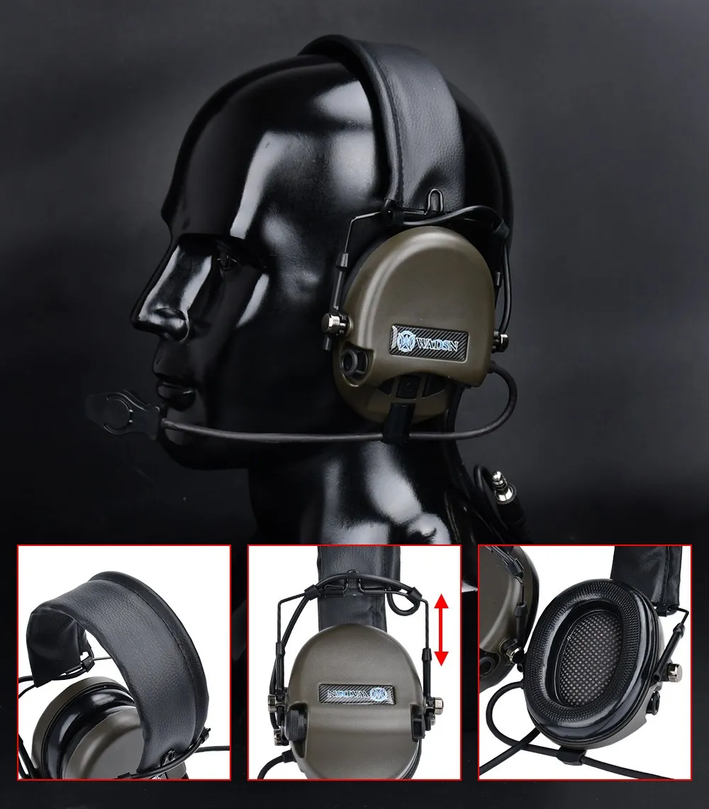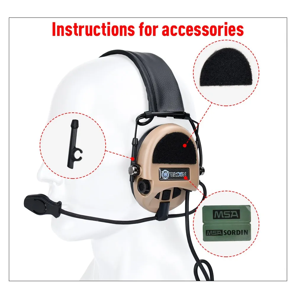 Auriculares de Tiro Táctico WADSN Softair Sordin, auriculares de comunicación, auriculares sin reducción de ruido, enchufe U94 PTT Kenwood