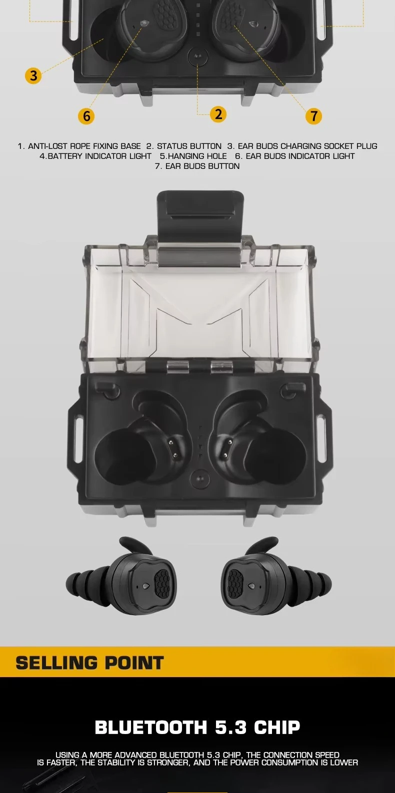 Auriculares inalámbricos para disparar, auriculares Bluetooth con protección auditiva con cancelación de ruido, auriculares deportivosInformación del producto